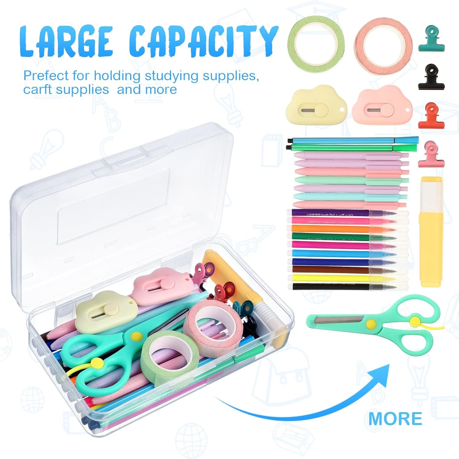 Practical Design: the large size of the large school box helps students and teachers organize pencils, crayons and other school supplies; It has a cover to avoid your items from falling; The clear design lets you see your items clearly and is easy to find