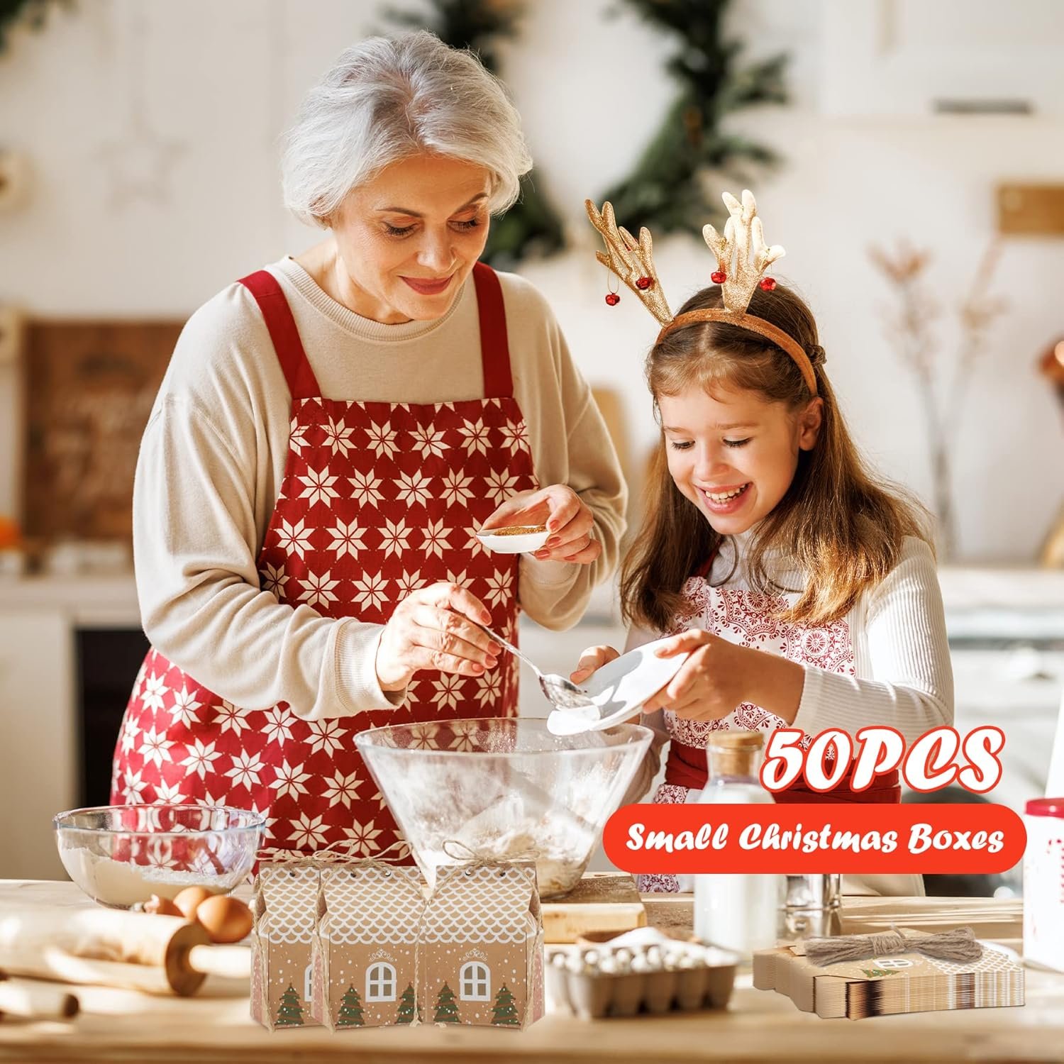Easy to fold into shape:Christmas mini boxes for candy is a one-piece design, you only need to manually cross-fold the bottom to form a box, and the top is secured with a rope. It is easy to shape and will not collapse. It's like experiencing DIY design, convenient and fun.