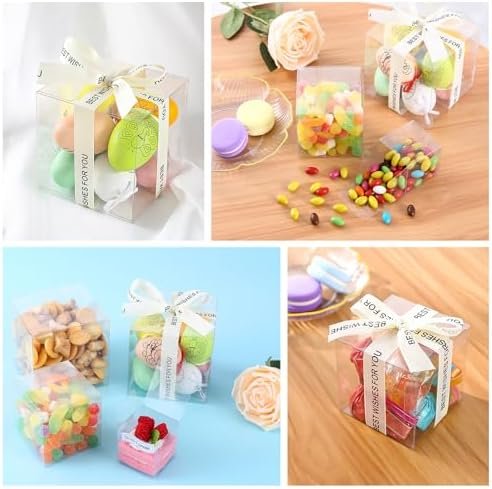 Premium Materia - These 4x 4x4 clear favor boxes are crafted from PET plastic, which is safer than PVC plastics, making them an excellent choice for storing candies, cookies, chocolates, and more.