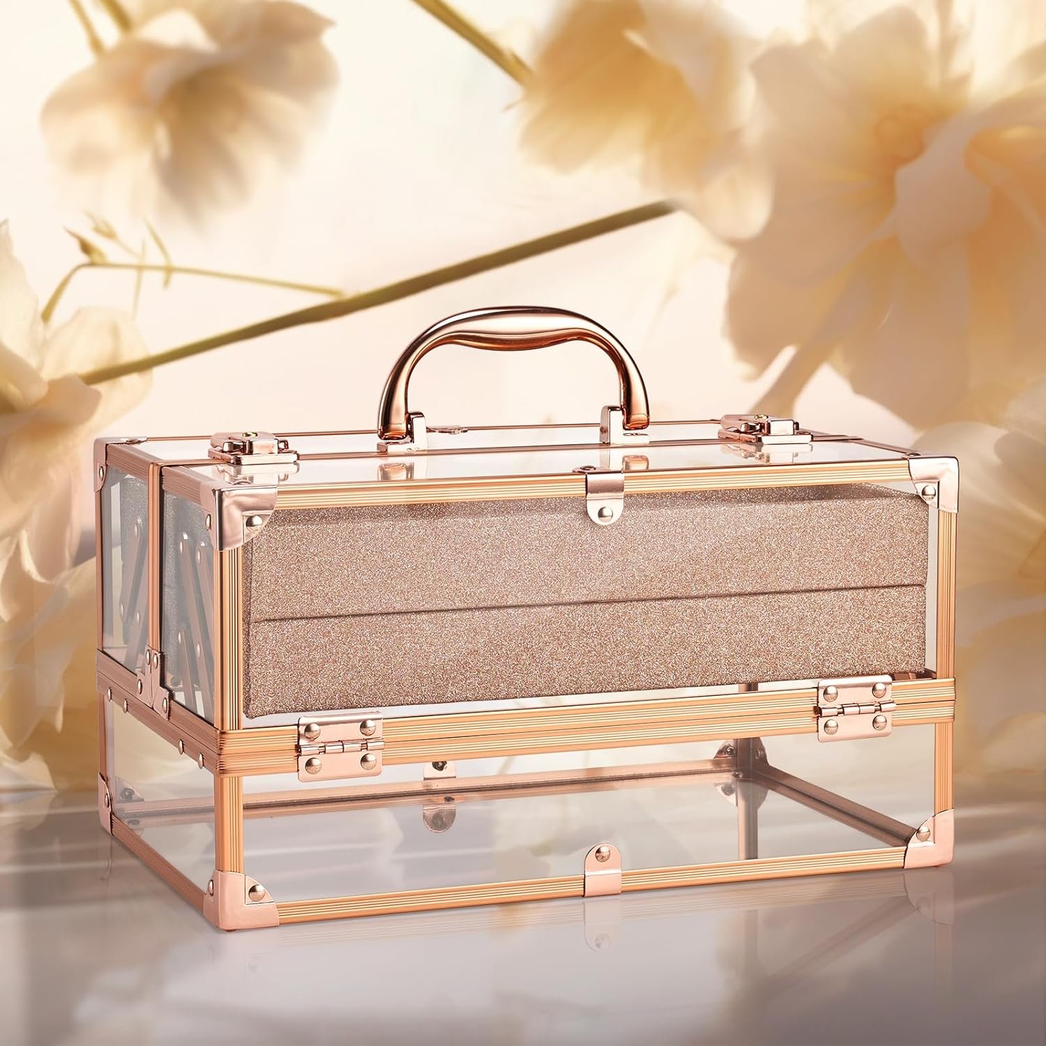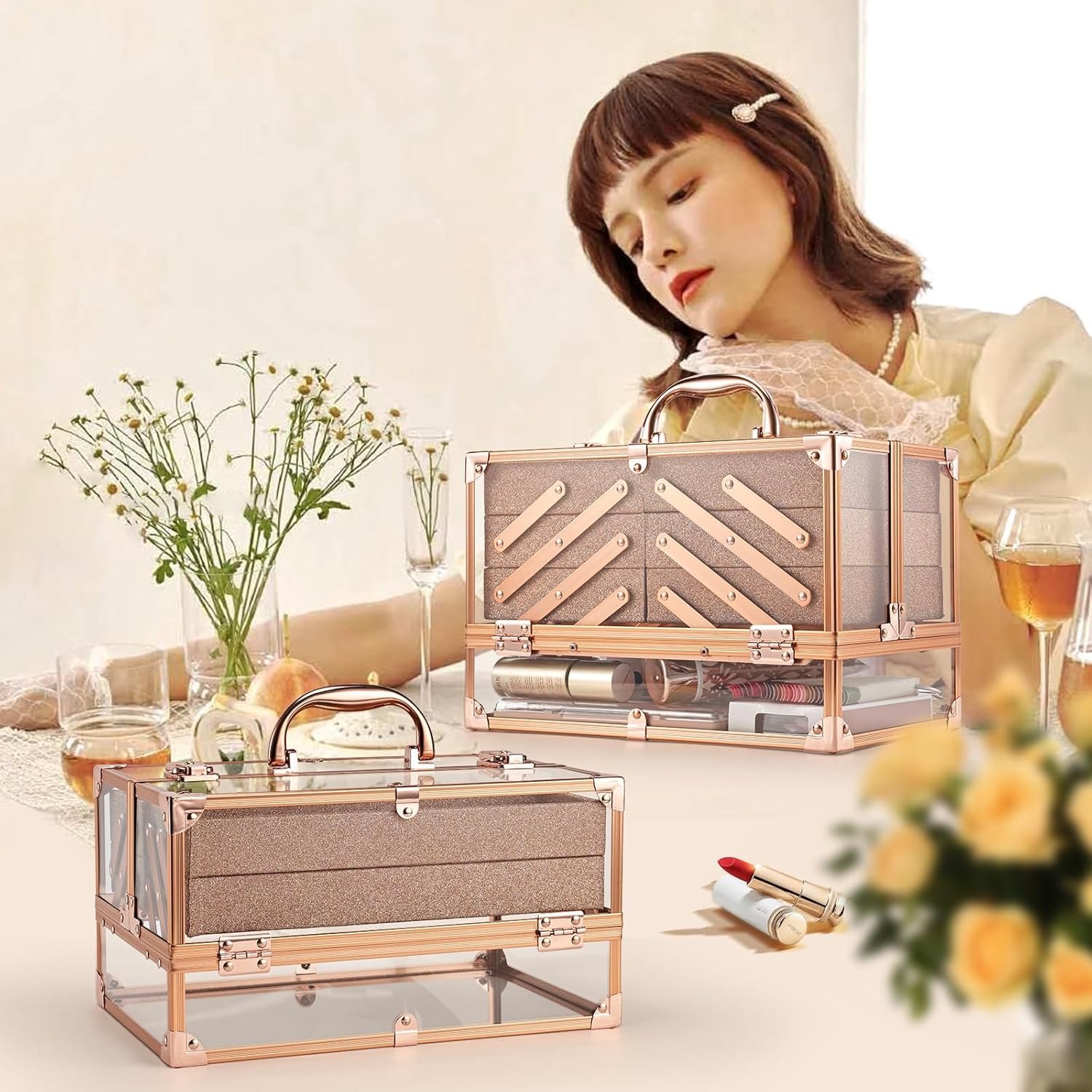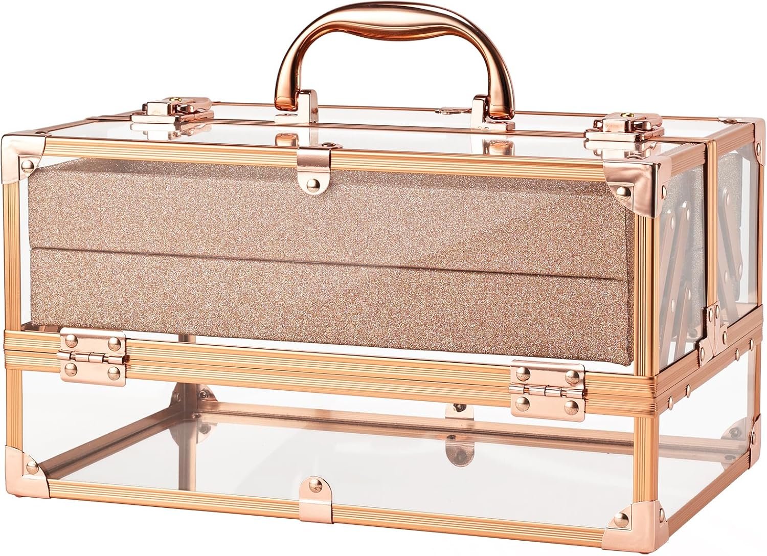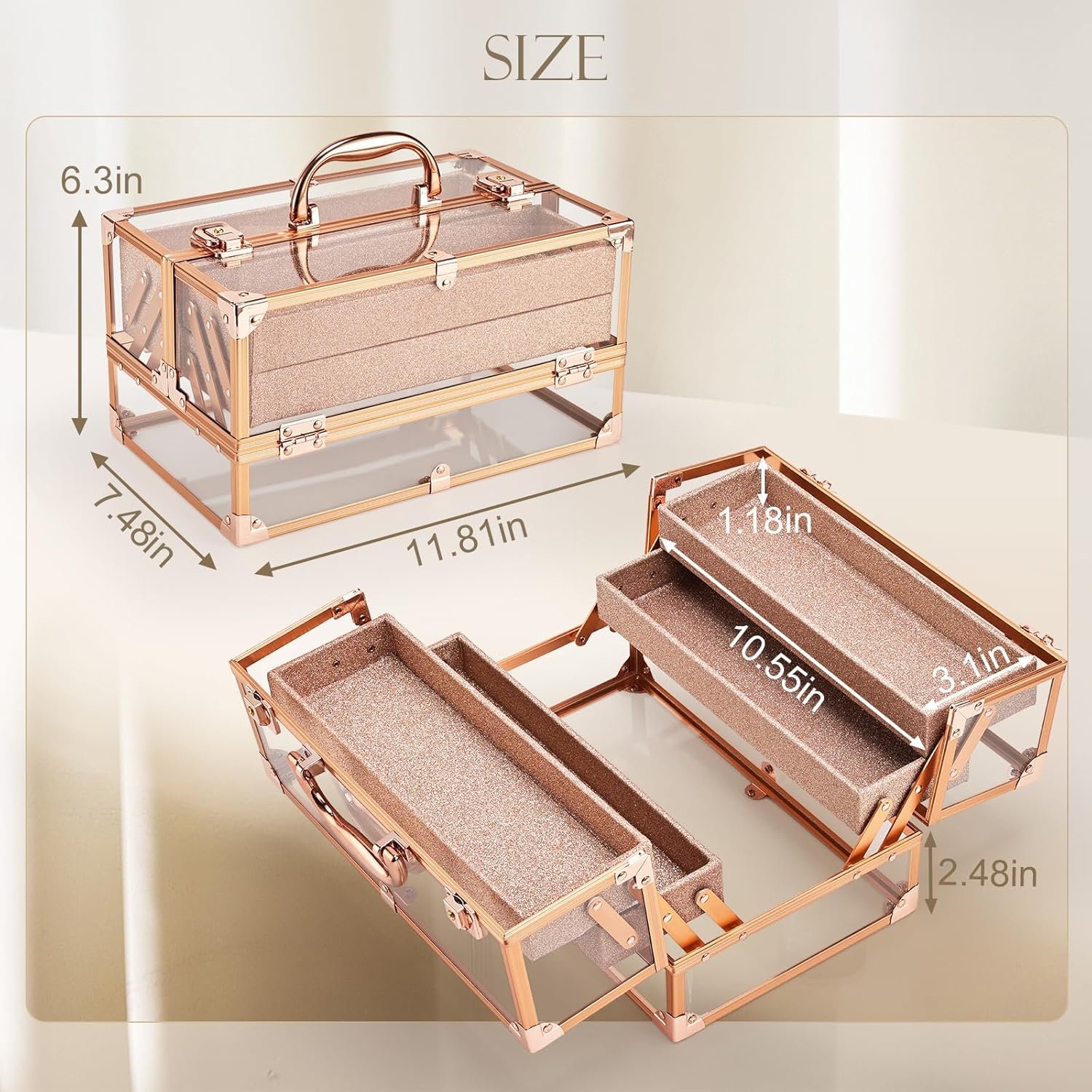 Buy in Bulk FRENESSA Makeup Train Case 11.8 INCH Cosmetic Storage Box Acrylic Makeup Organizer Portable 4 Trays Makeup Display Case for Stylist Makeup Artist Craft Traveling Case Organizer Rose Gold Source from Factory