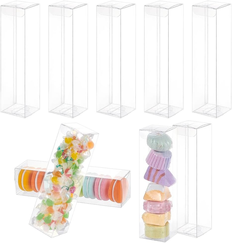 Package Includes: 30pcs clear plastic gift boxes, measures 5x5x20cm/ 1.95x1.95x7.87 inch, rectangle after assembled; Unfold size: 31x10cm/ 12.2x3.9 inch. The quantity is enough to meet your needs