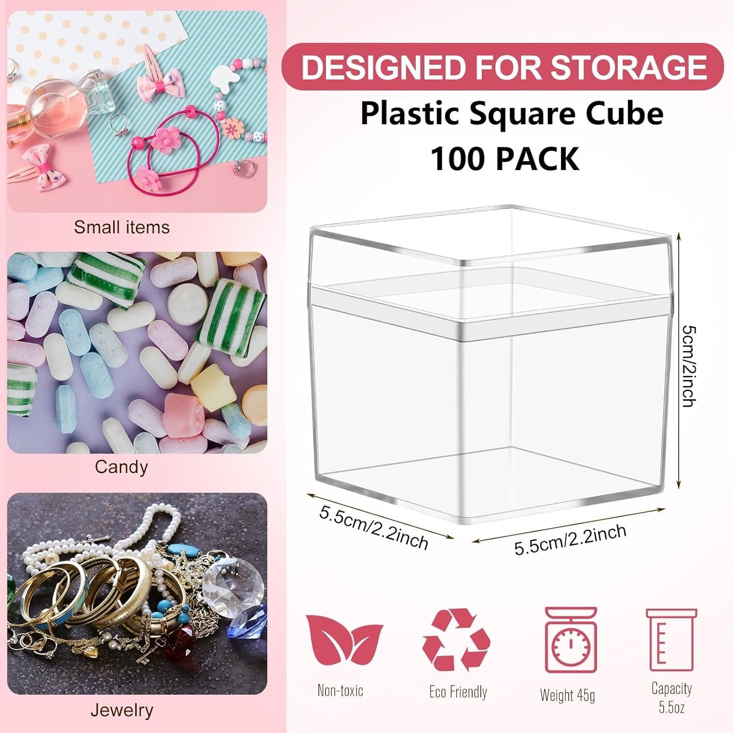 Satisfy Your Using Demand: the package comes with 100 pieces of square clear plastic boxes for party favors, small and exquisite, the adequate quantity is enough to satisfy your decorative and practical needs