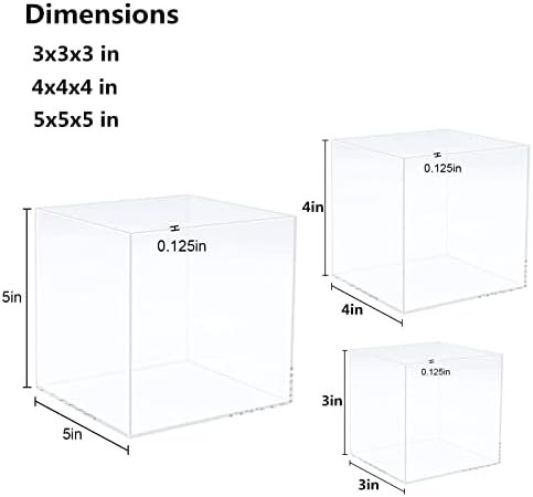 【جعبههای اکریلیک برای نمایش】 وقتی قسمت پایین بدون درب به پایین میچرخد، یک جعبه نمایش عالی برای نمایش کلکسیونها، صنایع دستی، جواهرات و غیره ایجاد میکند. این مکعبهای نمایش اکریلیک همچنین برای مهمانیها یا عروسیها برای نگهداری کیک، آب نبات، هدایای مهمانی و موارد دیگر عالی هستند.