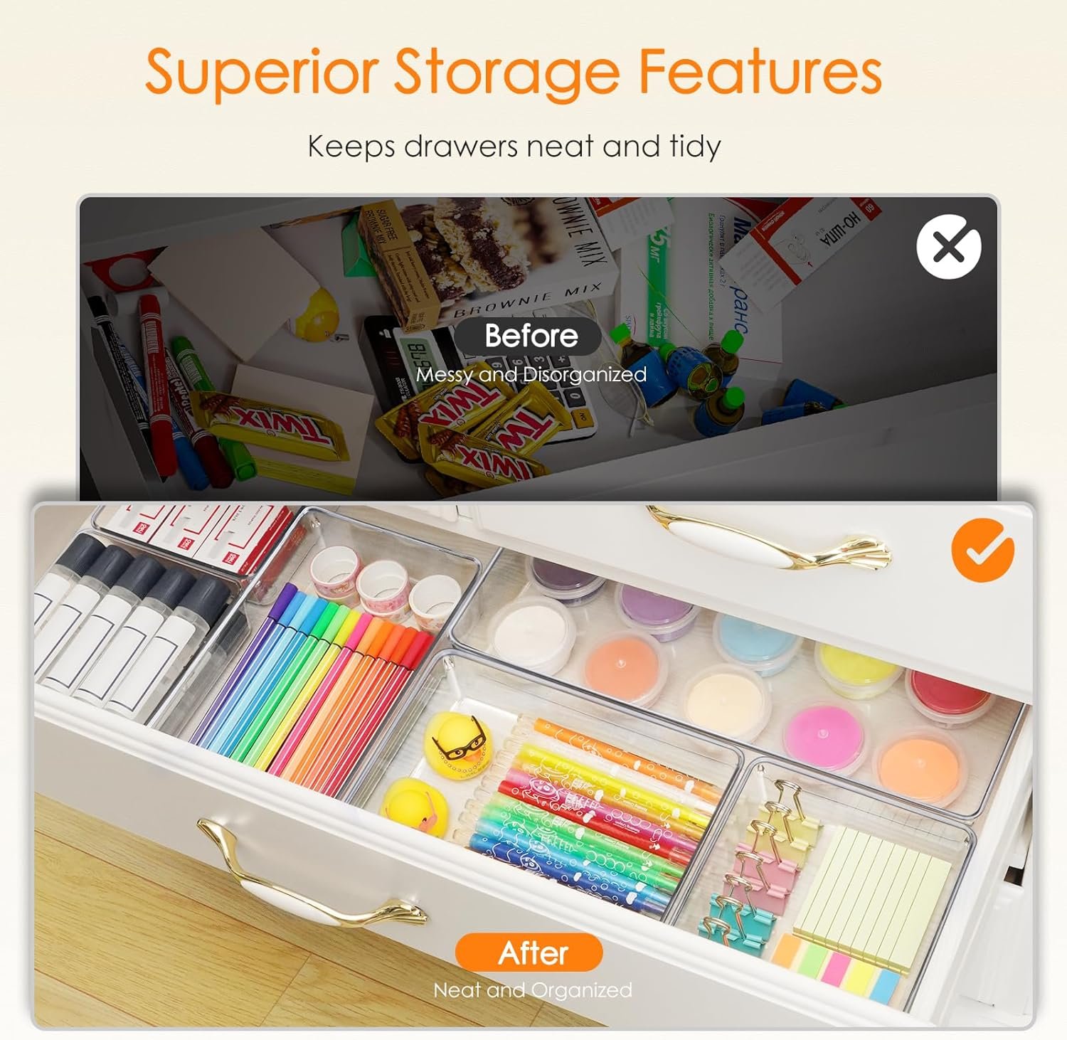 Space-Saving: Maximize your space and keep your drawers neat and tidy with this versatile set, save your time to organize and find your stuff. When you're not using it Stack these storage boxes together so that you can save maximum space