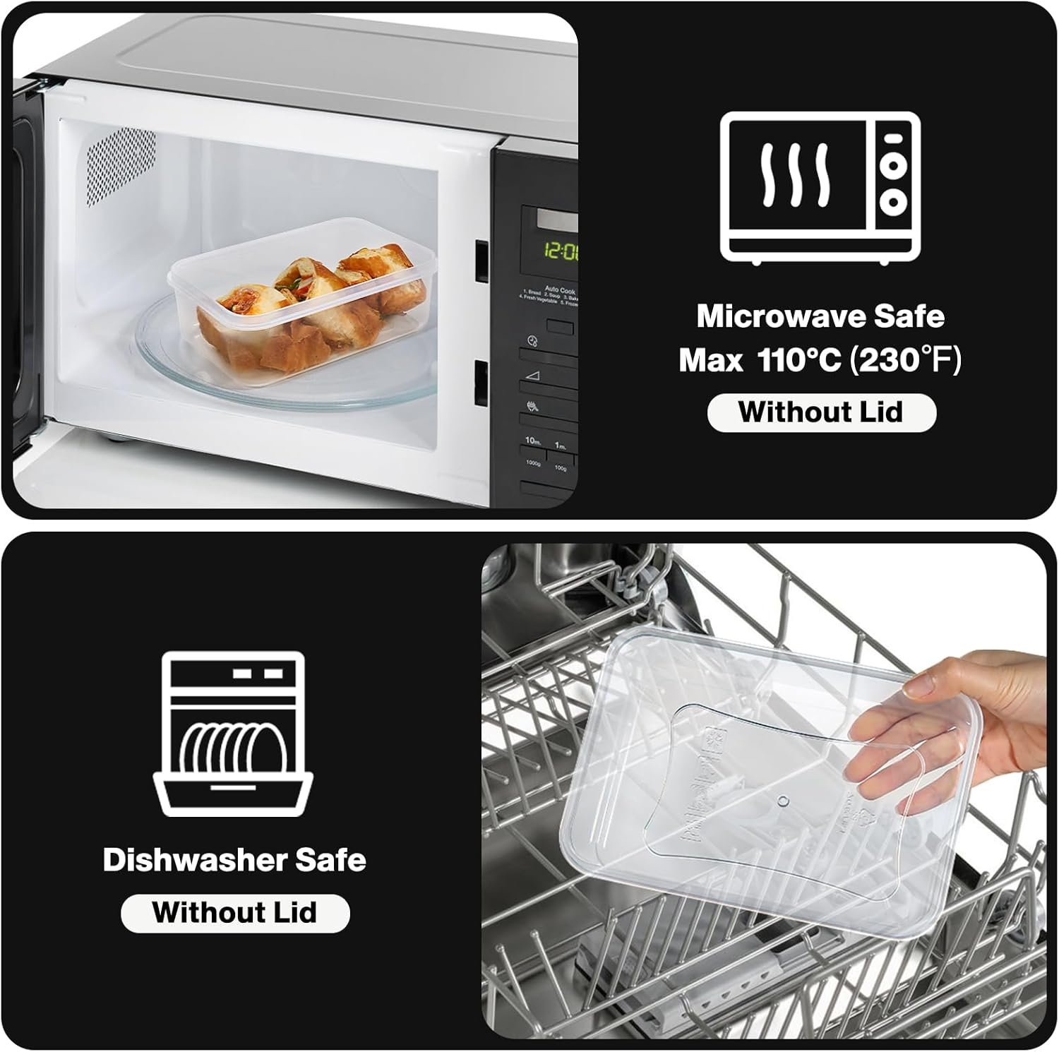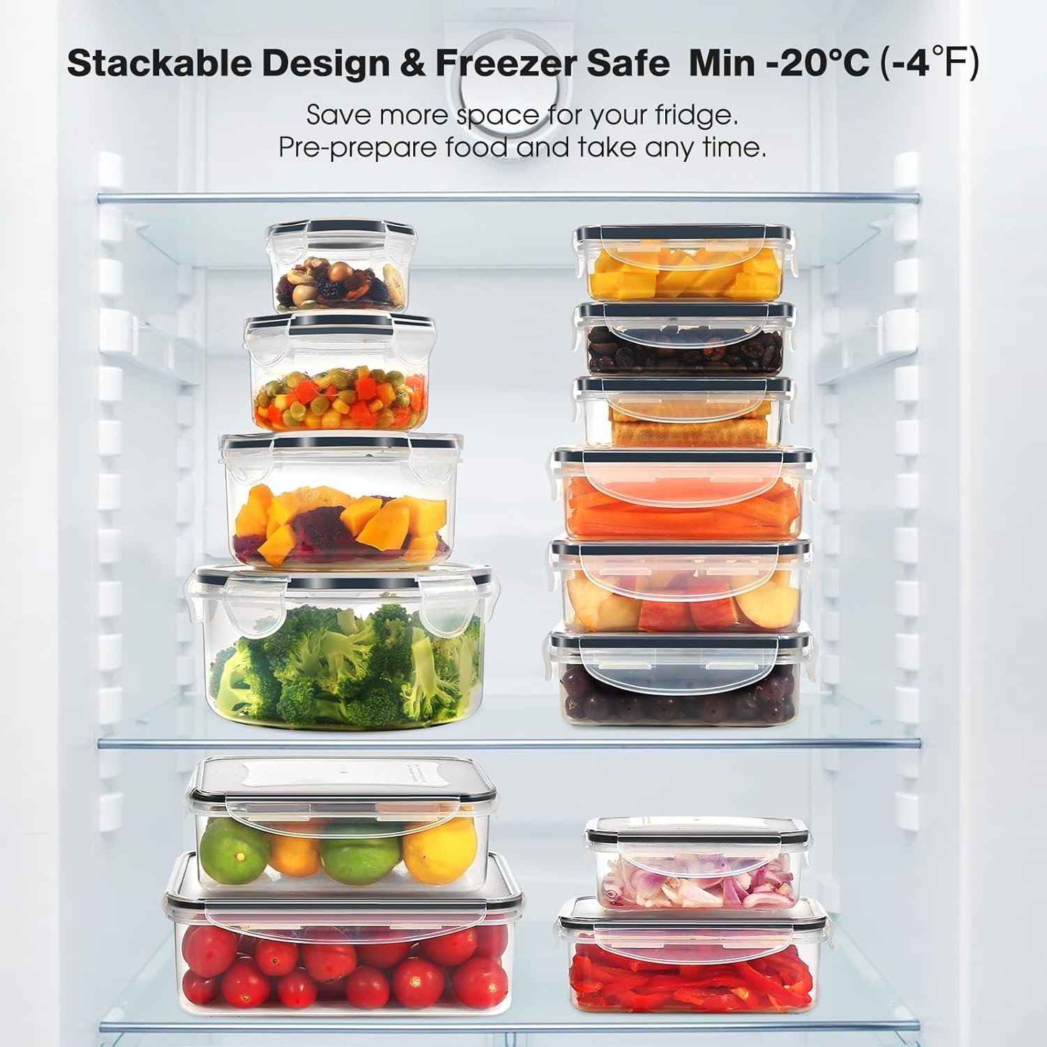 SPACE-SAVING DESIGN: Our plastic storage containers feature minimal space; they are stackable and will easily fit into your refrigerator cabinet. These containers can withstand extreme temperatures(-4℉ to 230℉), allowing you to safely use them in the microwave, freezer, and dishwasher (lid not included)
