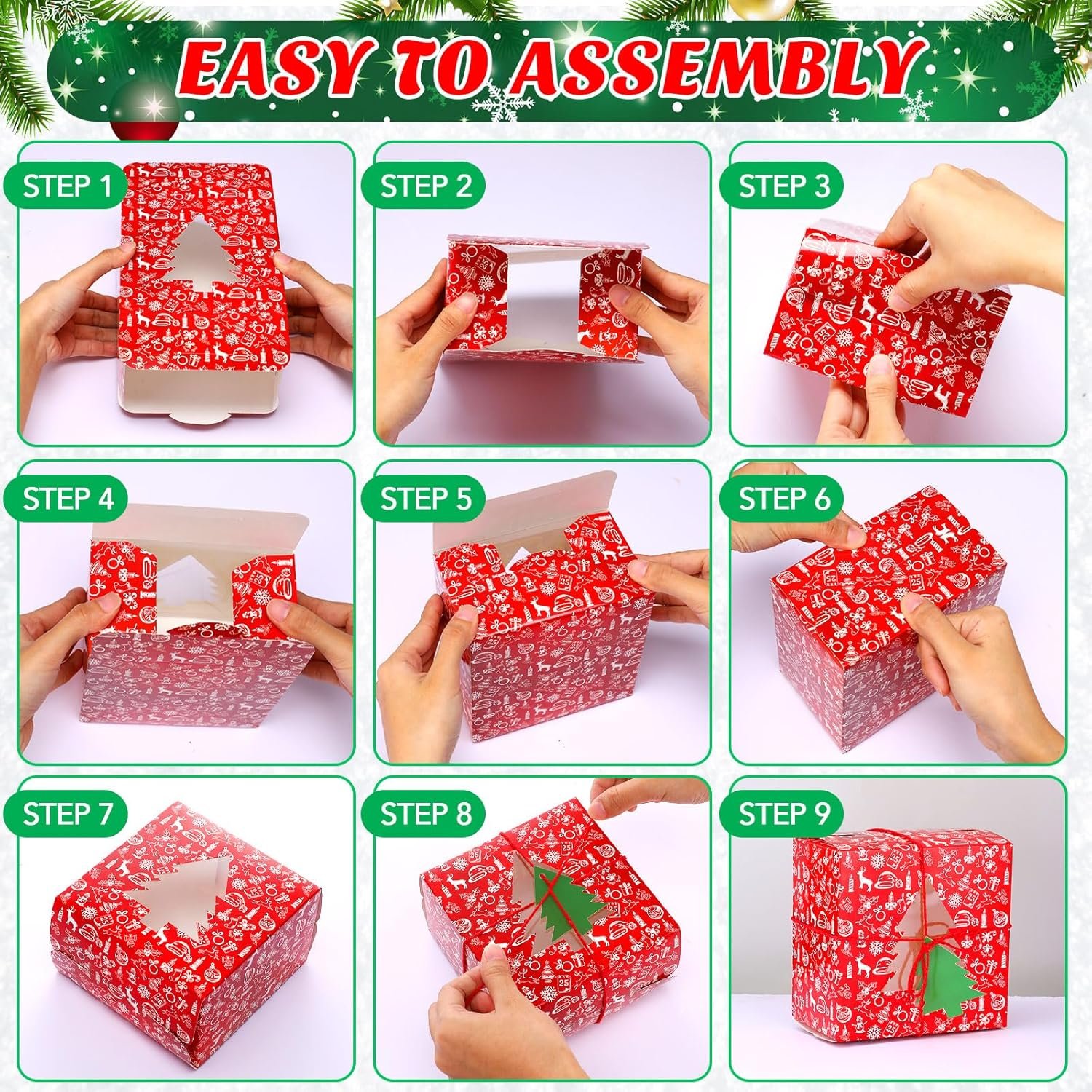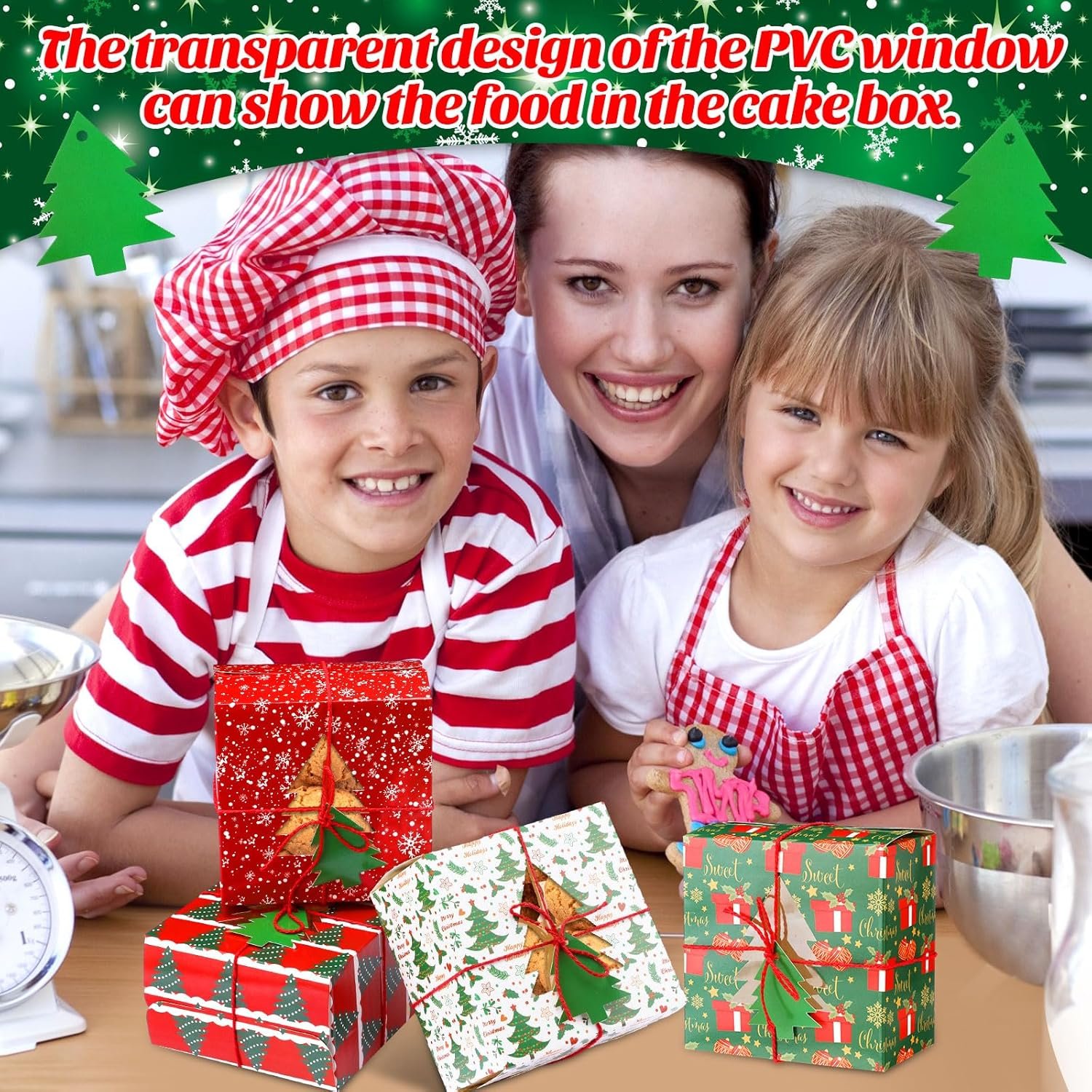 Reliable Quality: our bakery snack boxes are made of quality cardboard, sturdy and durable to withstand shipping and handling, easy to fold and store; The transparent design of the PVC Christmas tree window can show the food in the snack box, allowing you or guests to appreciate the artistry of the cupcakes without opening the box