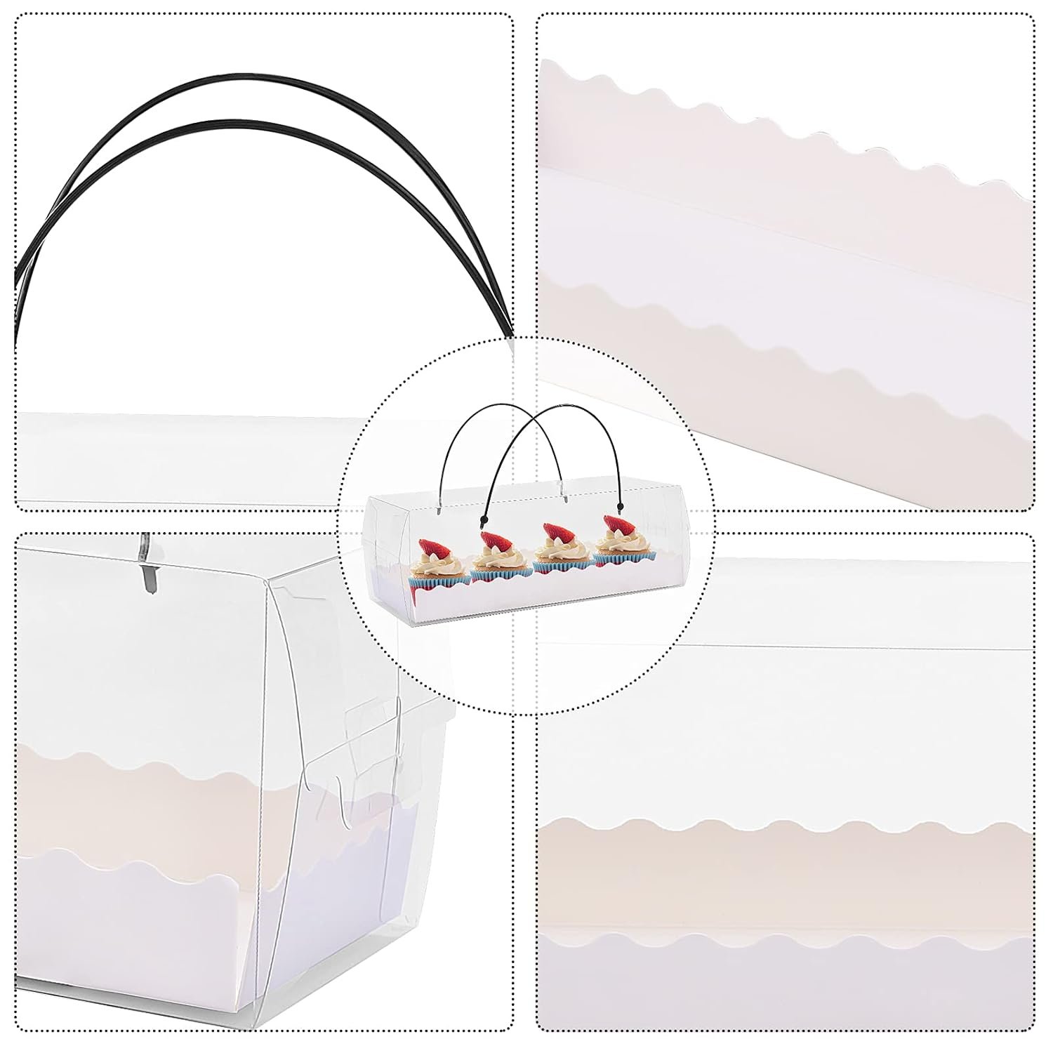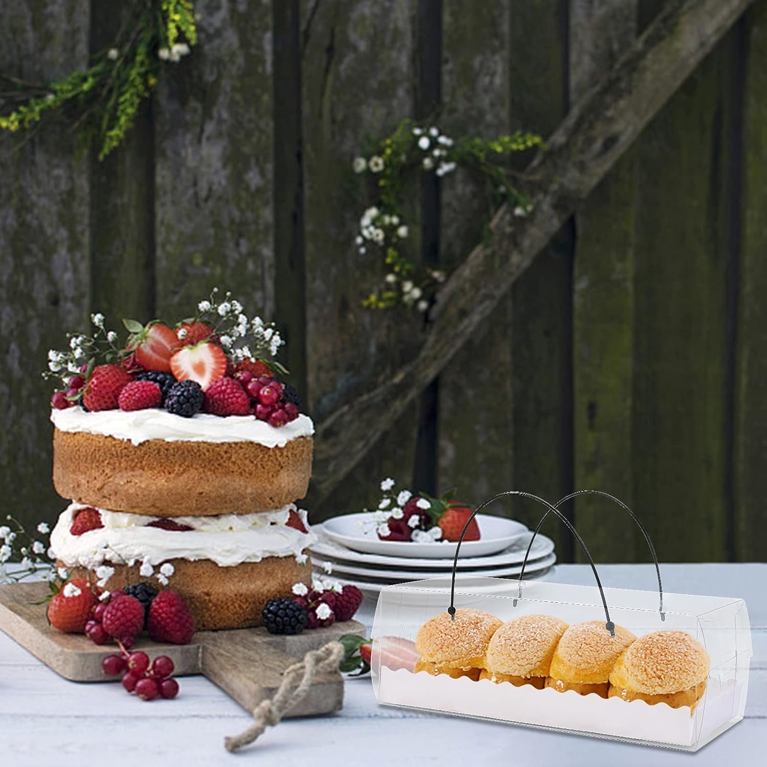 Trade Price 10 Pcs Clear Bakery Cake Boxes 10.8X4.3X3.8inch Pastry Dessert Cookies Gift Boxes with Handle and Paperboard for Bakery Cupcakes Candy,Suitable for Birthday Wedding Mother’s Day Baby Shower Wholesale Supplier