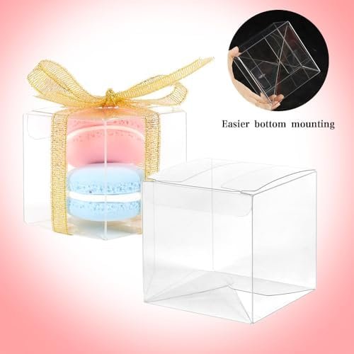 This product is made of high-quality PET material, food grade, and does not contain bisphenol A.There is no traditional film on the box, saving time and achieving rapid assemblyDecorating these boxes with ribbons can make them more beautiful and charmingThe automatic buckle box design makes it easy to assemble in seconds and more sturdy than typical bottom boxes.Very suitable for making macarons, cookies, chocolates, candies, collectibles, small gifts, etc., which will make your candies look more exquisite.Perfect for Christmas, weddings, baby showers, bridal showers, birthday parties, and other celebratory occasions.