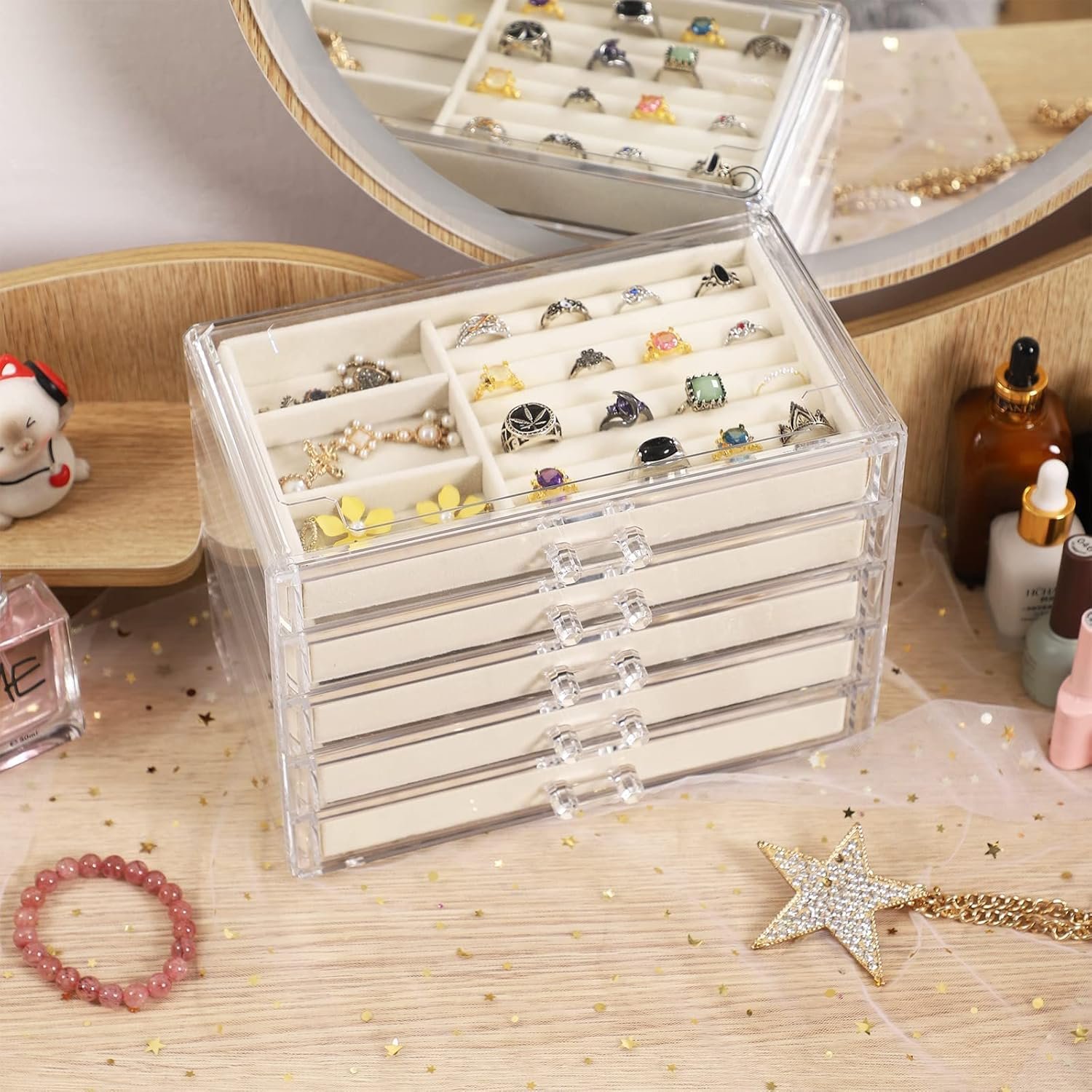 Item model number : 5 Drawer Jewelry Boxes-Beige