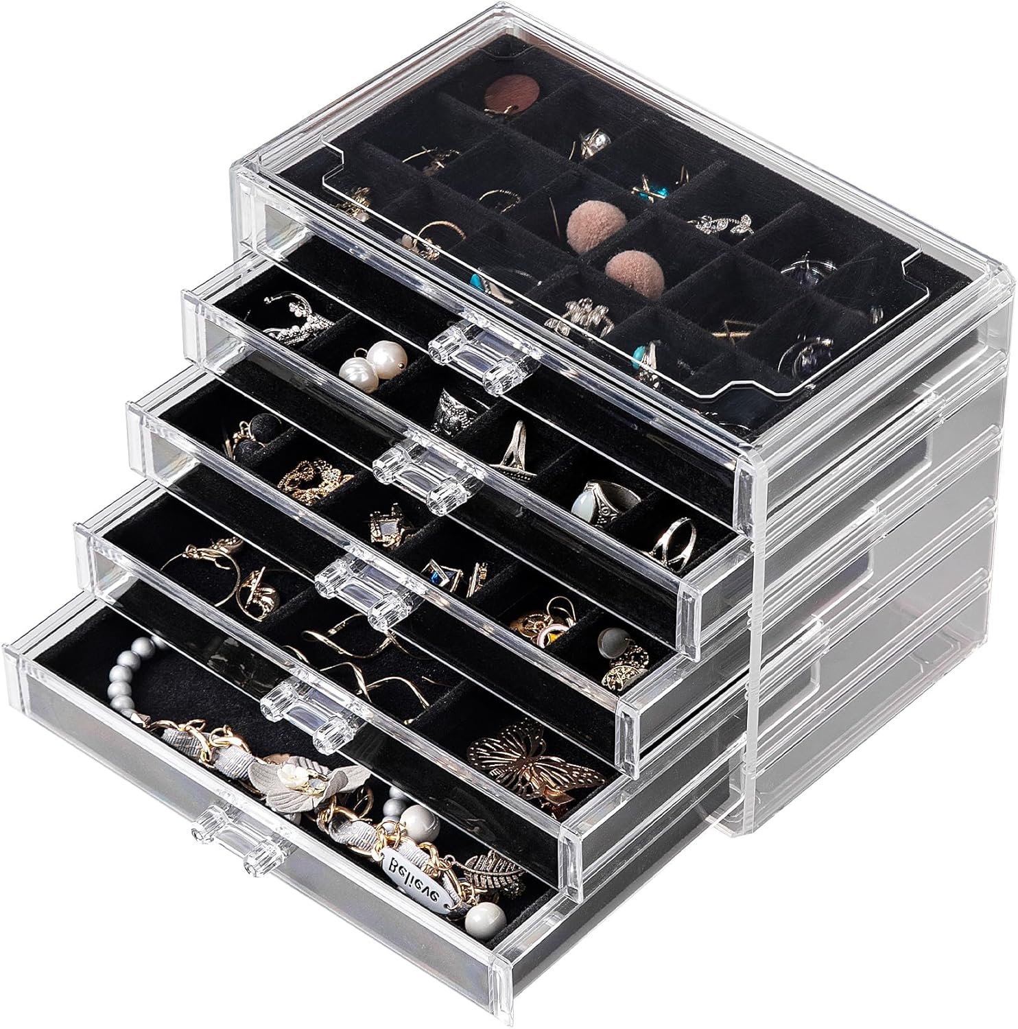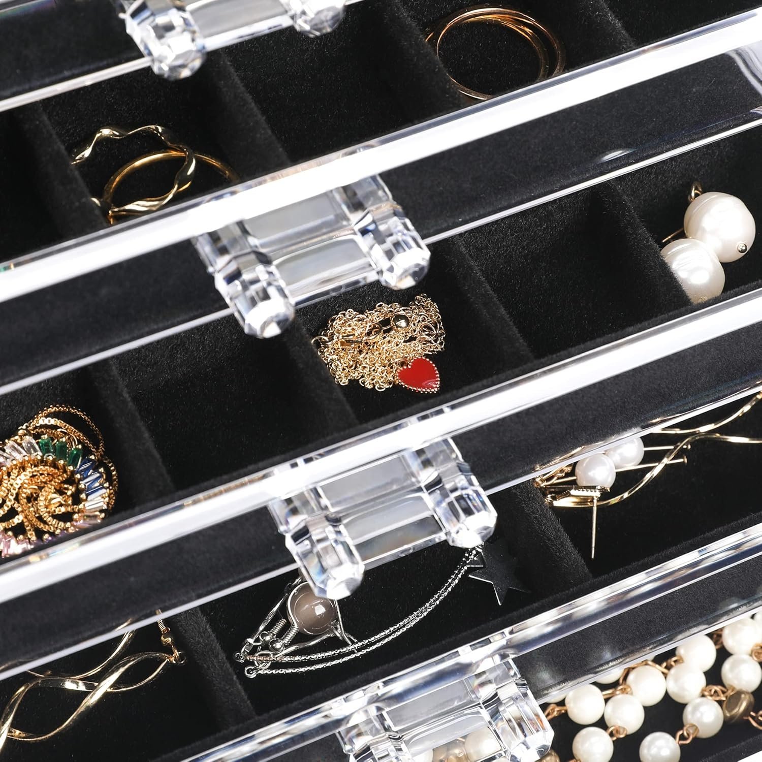 High Quality Material:The exterior of the box is made of acrylic material which is clear and durable,the interior tray of the drawer is made of soft velvet which can well protect your favorite jewelry.Better material makes better quality.