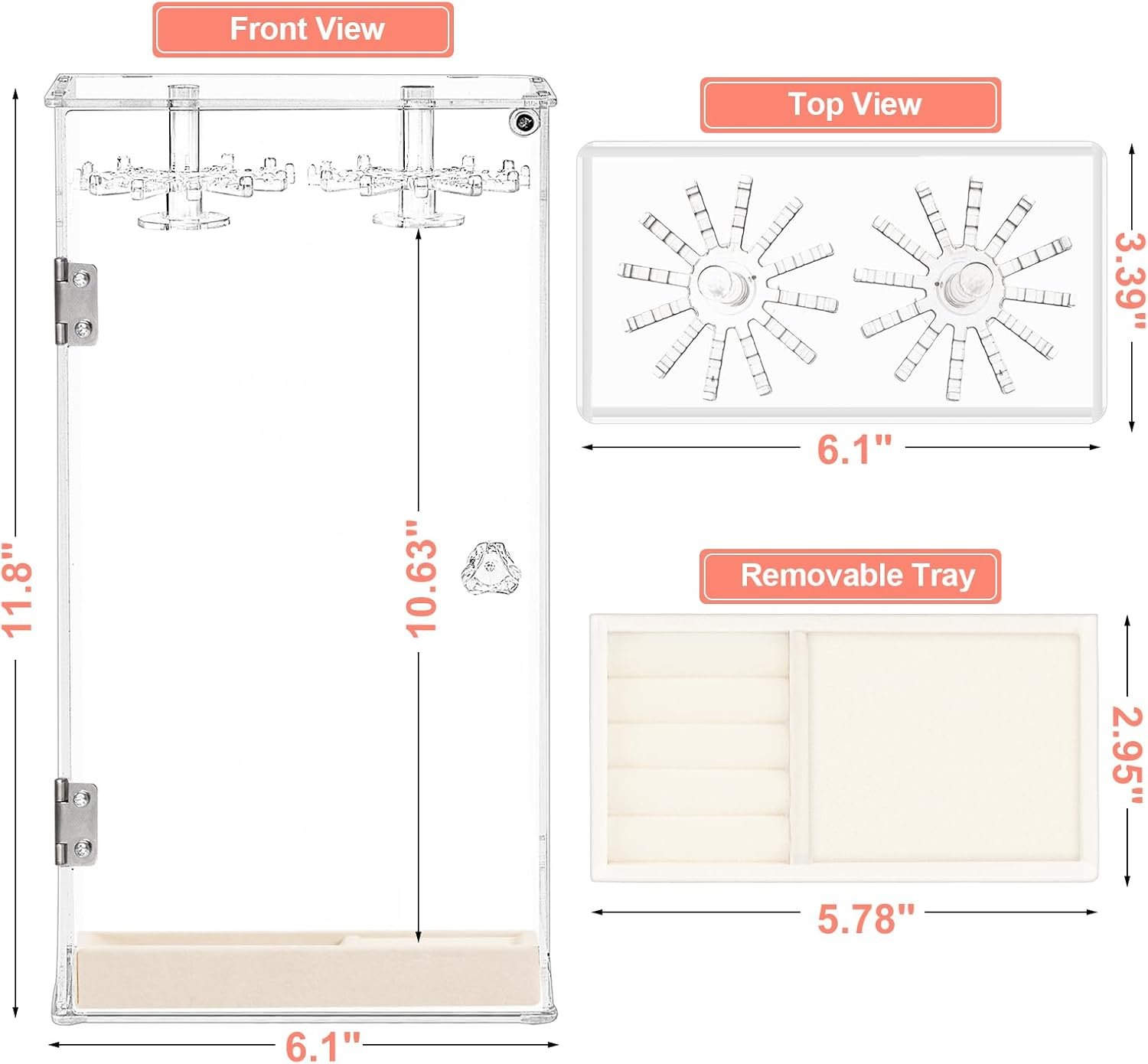 💍【Dust-proof and Anti-slip base Design】Jewelry storage practical hinged design and magnetic closure ensure the protection of your precious jewelry from dust and dirt. The base of the jewelry box for necklaces is equipped with an anti-slip design, preventing clear jewelry organizer from easily tipping over during use. This is an ideal and stylish acrylic earring organizer that helps keep your valuable jewelry clean and organized in the long run.