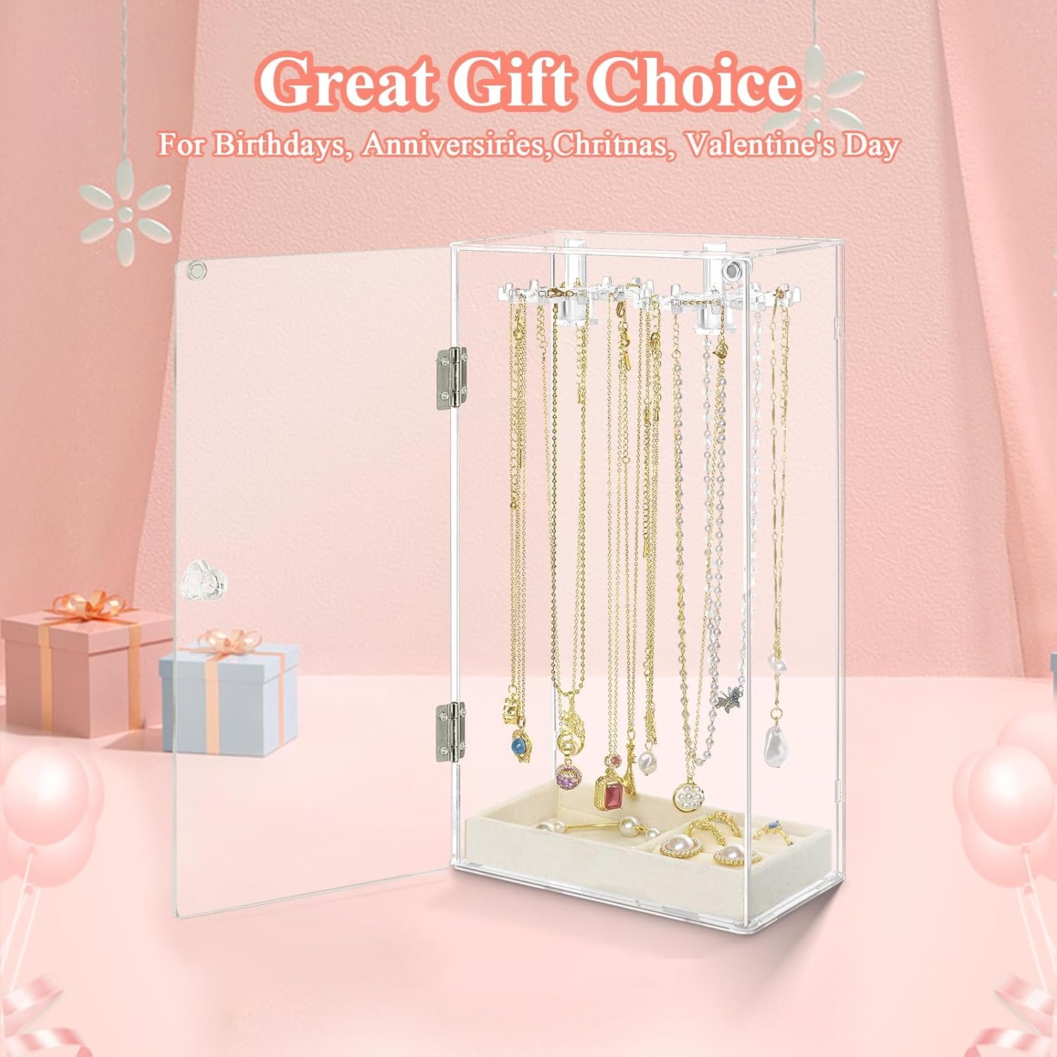 💍【Ideal Gift】Our Clear Necklaces Pendant Display Case Stand is necessary for every woman as a functional and basic rotatable clear jewelry organizer display case for long necklaces. Necklace display gift box for anytime or for special holidays: Mother's Day, Christmas, Valentine's Day, Birthday, Anniversary.Vanity decor is a perfect gift for mother, girlfriend, wife, daughter, sister, intimate friend, classmate, and colleague.