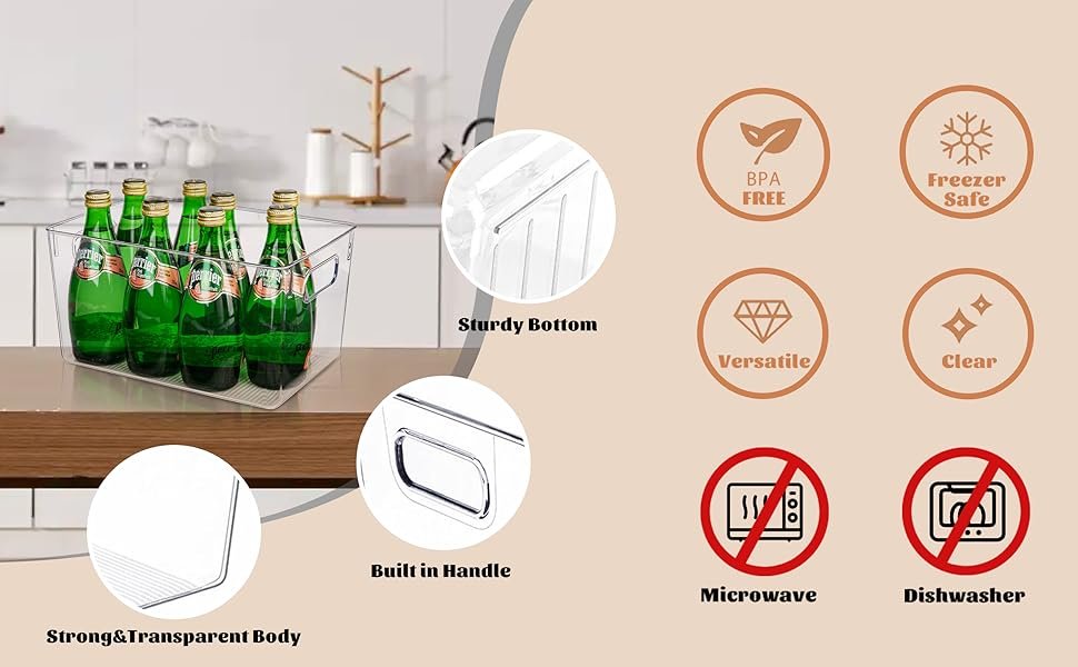 Through transparent high-quality plastic, you can easily and quickly find the items you need from our refrigerator organizers and storage bins.