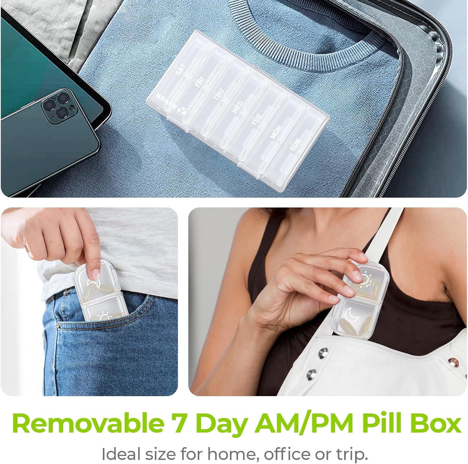 Portable Designed: Each day of the pill holder can fit in any of your wallet or pockets, and the whole morning and night pill boxes with a white case can protect your medication privacy while holding a week's pills for your travel