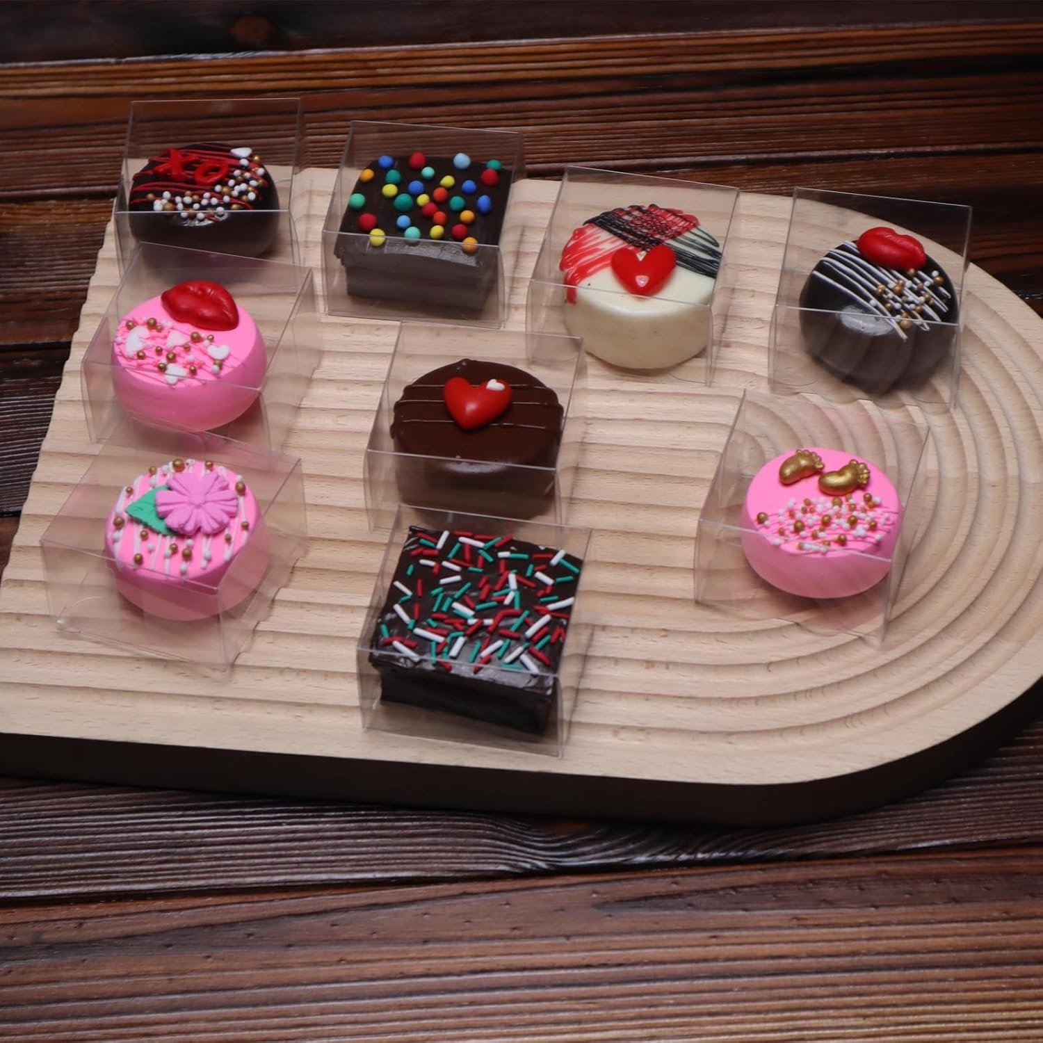 【What You Will Get】100cs Clear plastic boxes(not include chocolate cookies or other picture dispplay things)