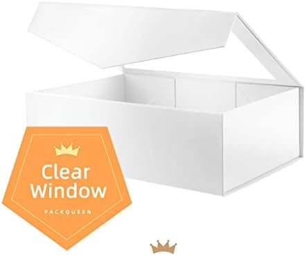 Trade Price Large White Gift Box with Window, 13.5x9x4.1 Inches Clear Gift Box for Present Contains Ribbon, Card, Bridesmaid Proposal Box, Extra Large Gift Box with Magnetic Lid (Glossy White) Wholesale Supplier