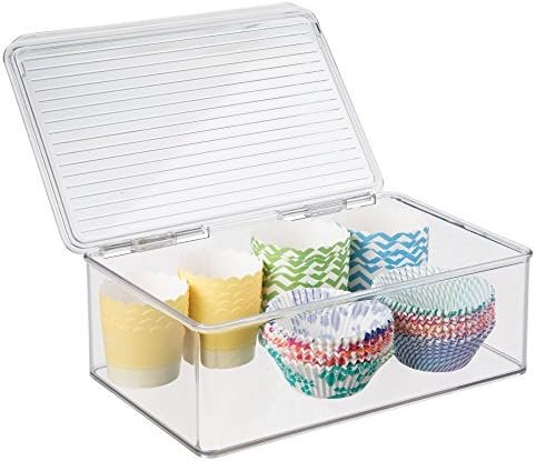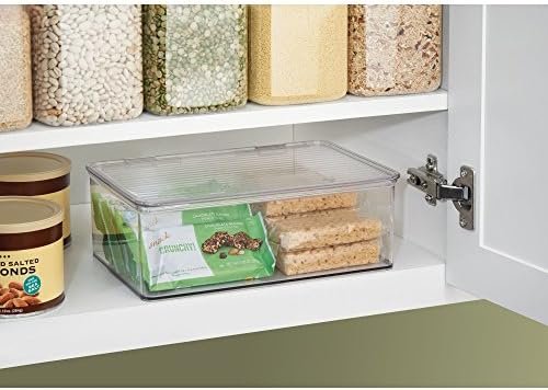BUILT-IN HINGED LID - This plastic kitchen storage container features a transparent hinged lid to ensure contents are always visible and accessible; use as a snack organizer for pantry, a kitchen shelf organizer, cabinet storage and so much more