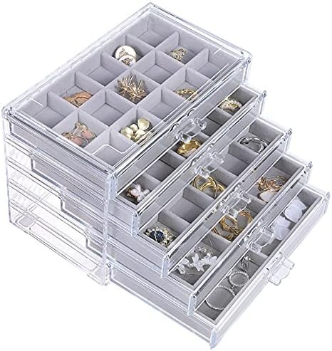 buy in bulk misaya earring jewelry organizer with 5 drawers, christmas day present, clear acrylic jewelry box for women, velvet earring display holder for earrings ring bracelet necklace, gray source from factorybuy in bulk misaya earring jewelry organizer with 5 drawers, christmas day present, clear acrylic jewelry box for women, velvet earring display holder for earrings ring bracelet necklace, gray source from factory