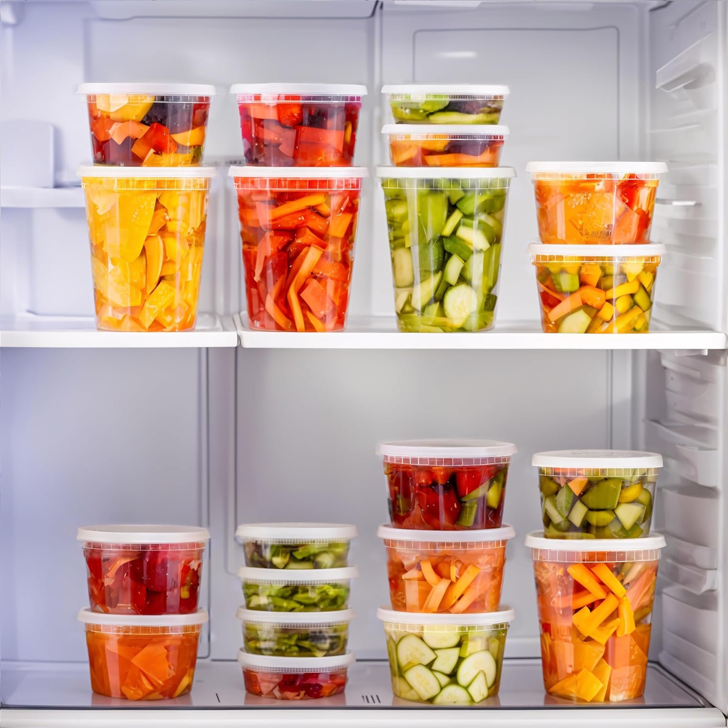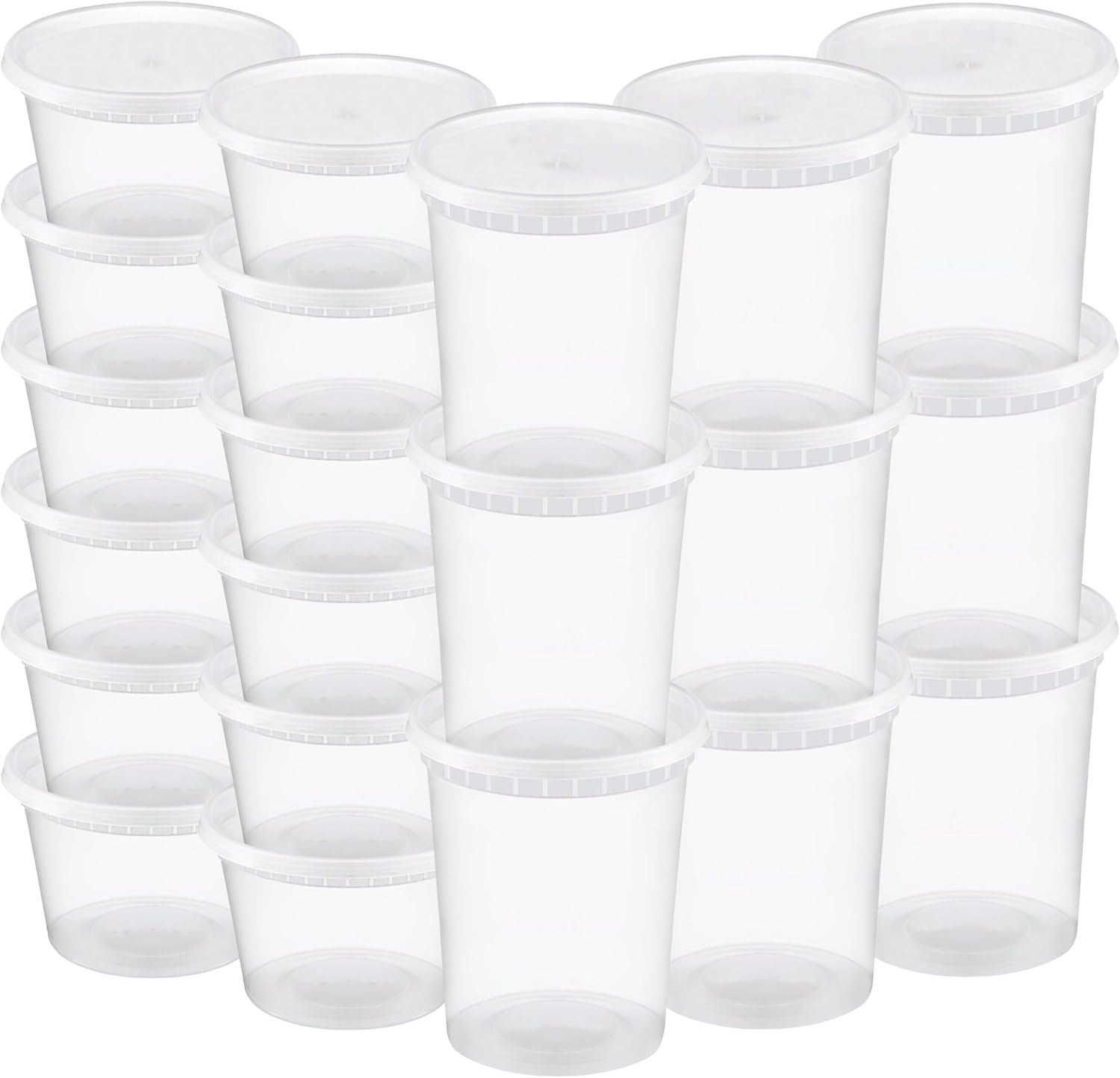 54 LIDS FOR 48 CONTAINERS: This bulk order includes 48 round containers in two sizes, along with 54 lids. You'll receive 24 containers with a 32 oz capacity and 24 containers with a 16 oz capacity. The one-size-fits-all lids make it easy to find the right fit every time. Perfect for everyday use, these containers are ideal for packaging leftovers, pre-made foods, and raw ingredients.