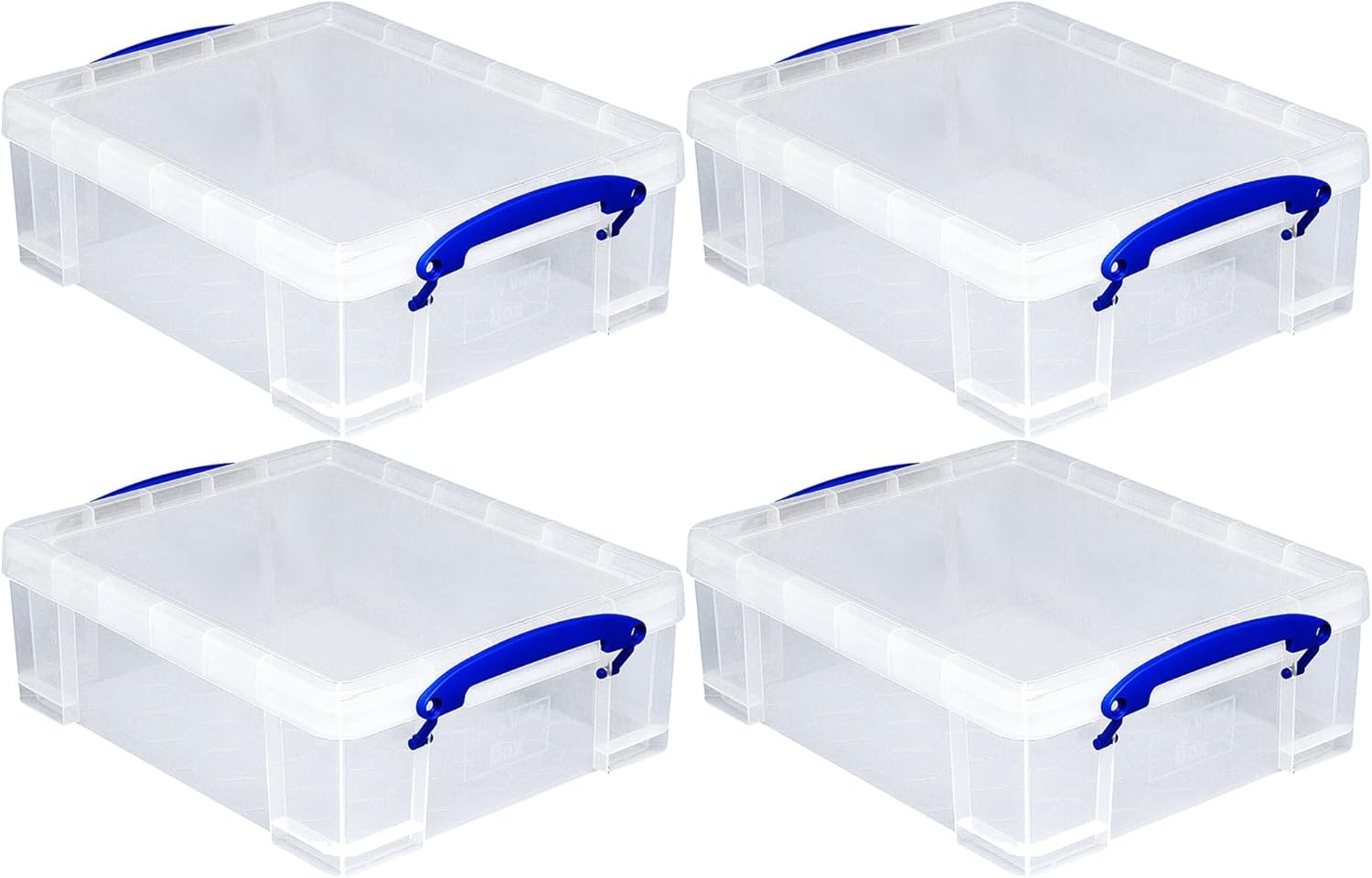 Become a true master of home storage and organization with the unbeatable reliability of the 4 Really Useful Box Storage Containers. These spacious 8.1-liter bins are tailor-made to cater to all your organizing needs, seamlessly accommodating a diverse array of items in your home or office. Efficiency is at the forefront, as the transparent design allows you to swiftly identify the contents of each plastic storage bins at a mere glance, eliminating the need to open them and thereby saving you precious time and effort. Transporting your essentials becomes a hassle-free task with the inclusion of convenient clip-lock handles, ensuring ease of mobility wherever you need to go. The snap lid mechanism of these storage containers with lids not only secures the contents within but also provides a protective barrier, minimizing the risk of accidental spills or untimely messes. Crafted from durable plastic, these clear storage bins with lids are built to withstand the test of time, guaranteeing long-lasting use even with regular handling and storage demands. The 8.1-liter capacity offers ample space for a myriad of items, be it office supplies, cherished photos, or beloved small toys, all while maintaining a compact footprint in your living space. Embrace a simplified lifestyle by incorporating the set of 4 Plastic Storage Containers from Really Useful Box into your routine. This practical storage solution seamlessly combines functionality, durability, and a touch of style, ensuring your space remains organized with utmost convenience.