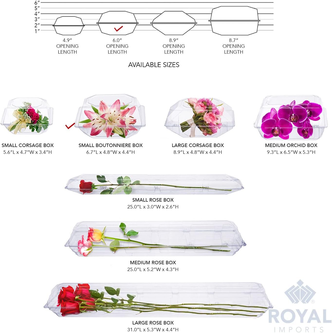 Uses: Its most common use is the “boutonniere box” and “corsage box”. However, creative florists and DIYers have used these small plastic boxes for single stem flowers and little floral bouquets in addition to many other uses.