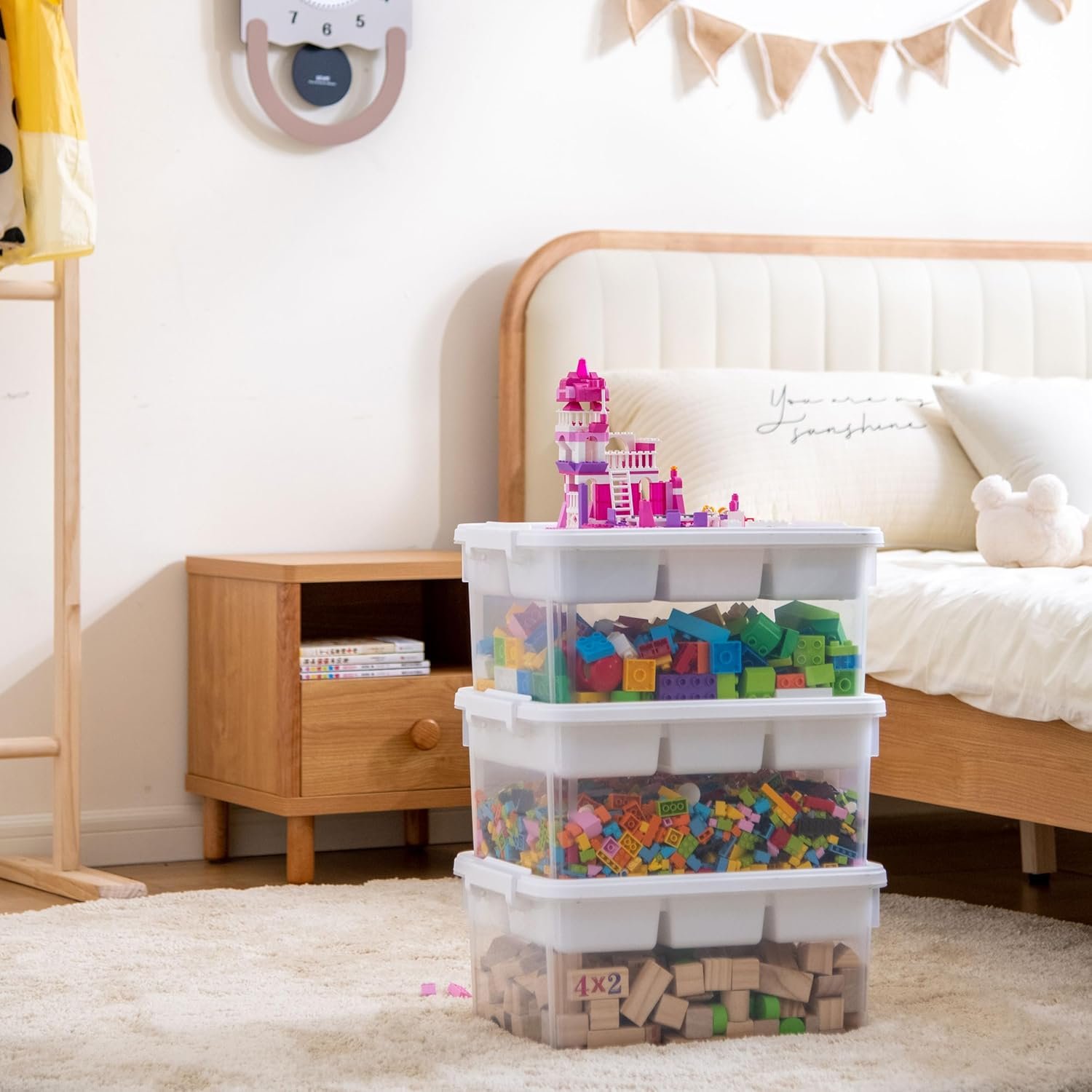 【17-Quart Capacity】Capacity: 17-quart. Overall Dimensions: 15.94"L * 11.61"W * 7.28"H. Perfect for arts and crafts supplies, stationery, lego, kids building blocks, sewing kit, and other small tools;