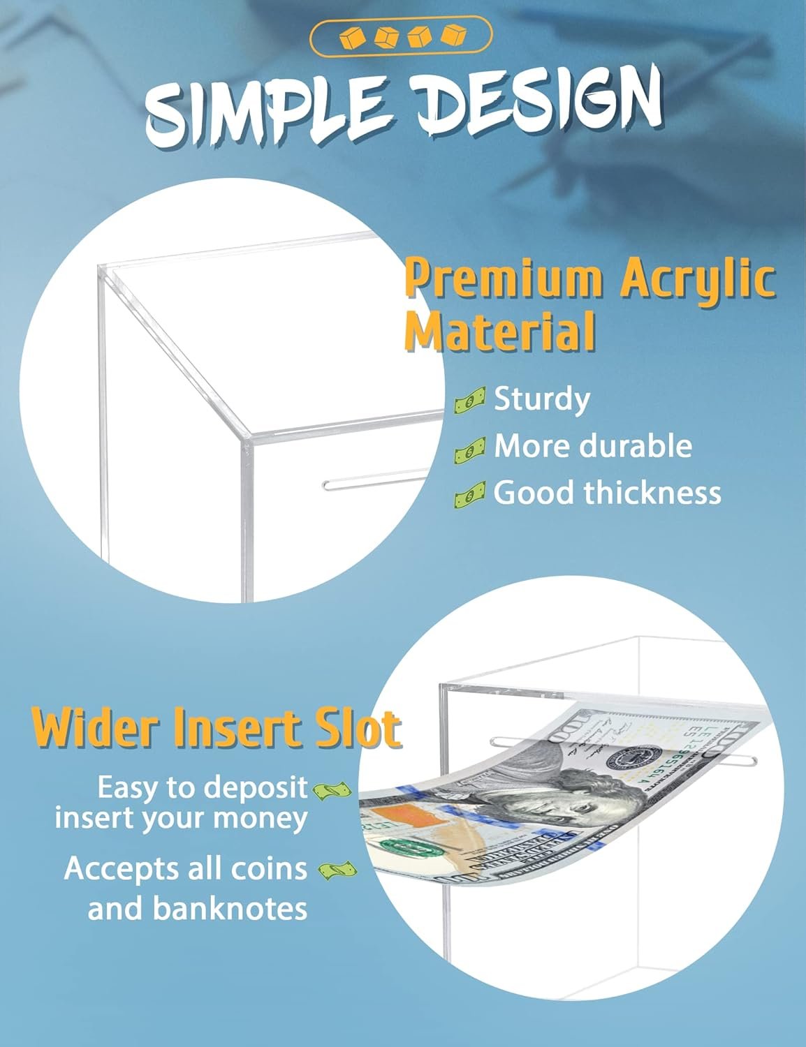 Transparent Design: The acrylic piggy bank is made of transparent acrylic and allows kids and adults to easily watch savings grow, giving motivation to keep adding to it. Fun way to save money and keep all your spare change