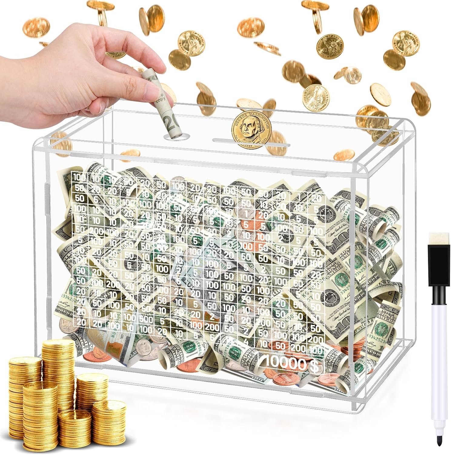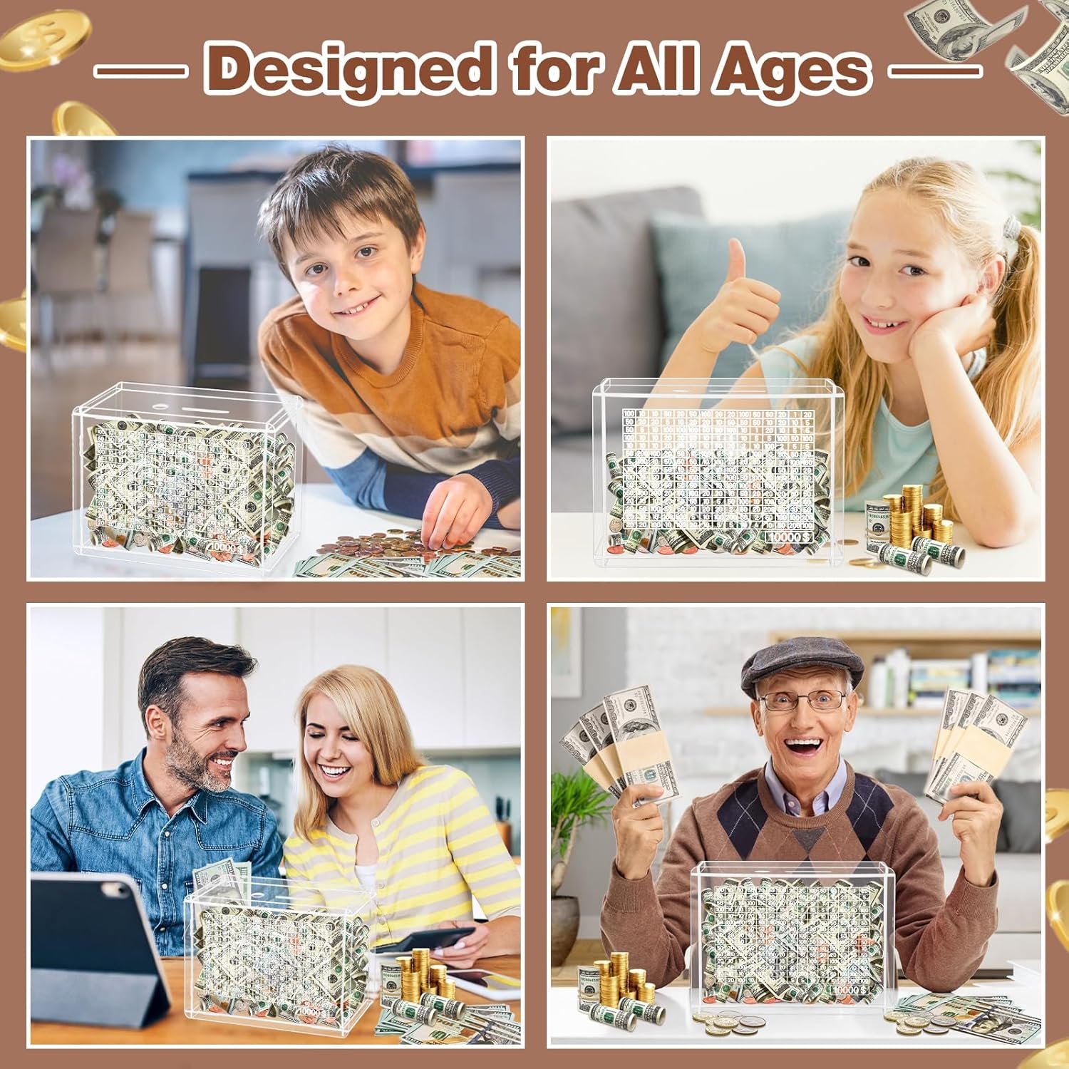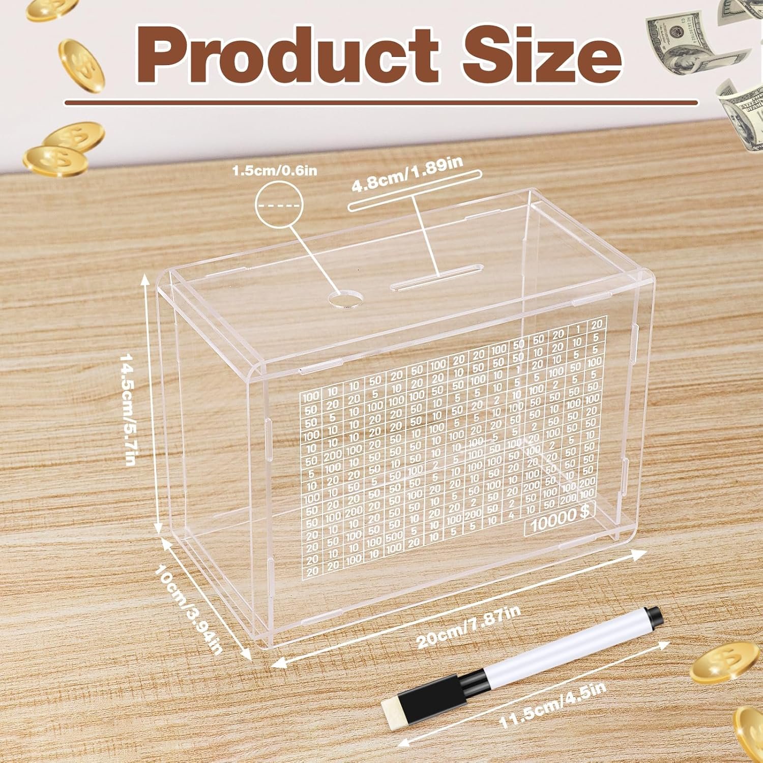 Durable and Elegant Design - Crafted from sturdy high definition high-quality acrylic, this money box is as durable as it is stylish. Its sleek and modern appearance fits seamlessly into any room, whether it's your bedroom, living room, dorm, or study, adding both function and flair to your space.