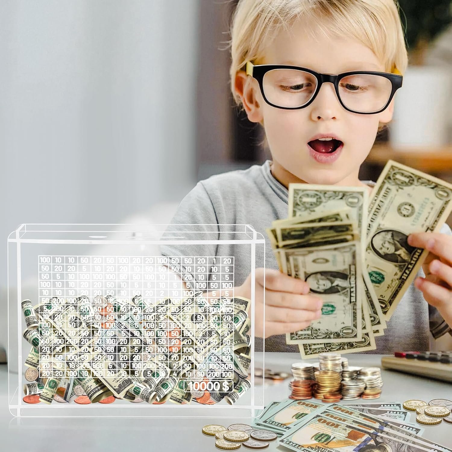 10,000 Dollar Savings Challenge - Our money box is designed to help you achieve a $10,000 savings target, making the process both fun and motivating. The front panel features printed numbers, allowing you to mark off the amount saved each time you add to the box. As each number is checked off, you're one step closer to hitting that $10,000 milestone.