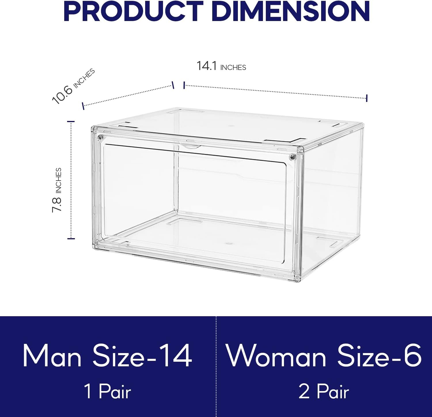 ✔ PROFESSIONAL GRADE Shoe Display Case - Our sneaker storage box is made of heavy duty material PET and acrylic .Each side of the box is made of hard piece.Each box measures 14.1"x11"x8.8" and can fit up to US size 15 shoes.