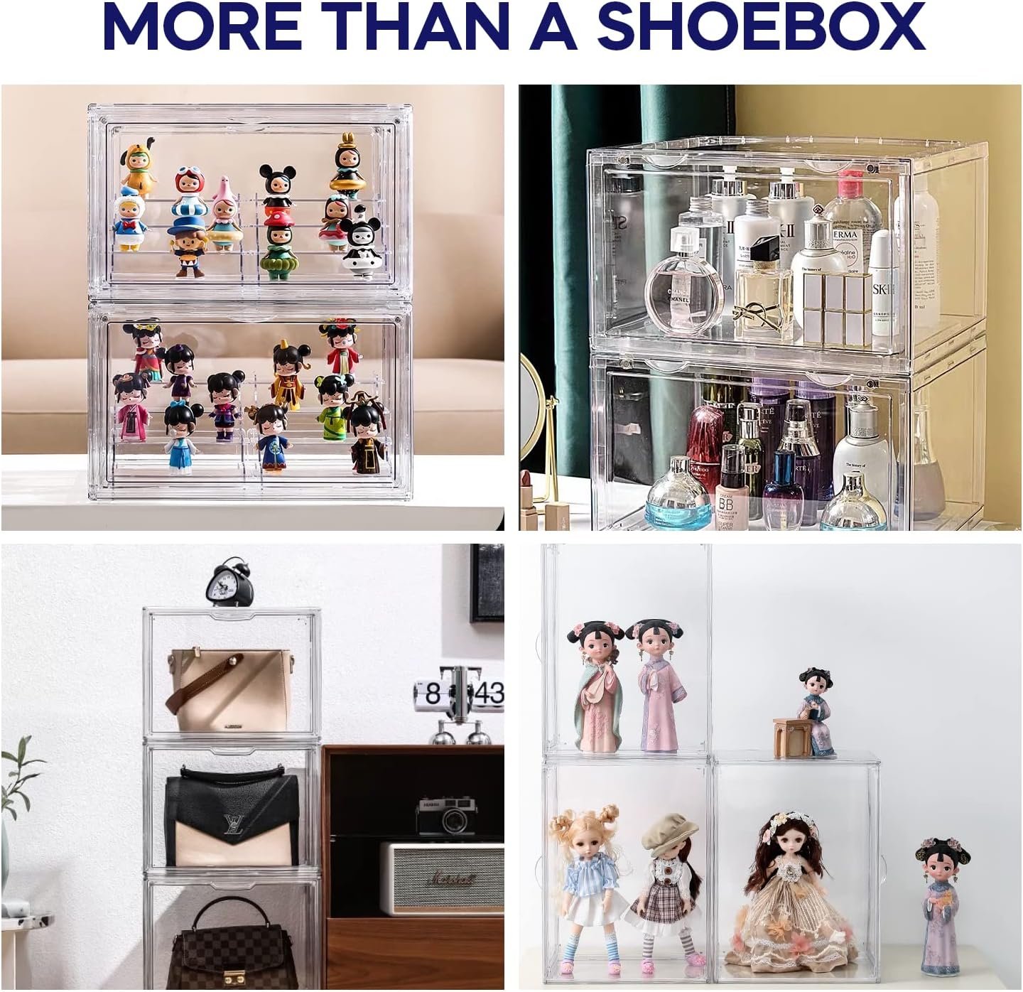 ✔ MORE THAN A SHOE CONTAINER- Our shoe box are not just good for sneaker storage but are also good for hat and boot organizer.You can use them as display cases for other collectibles such as figures, toys, baseball caps, football,cosmetics, lego and more. Our clear shoe box is a good alternative for glass or acrylic display case .It also works as bread storage, decorative box and gift box.
