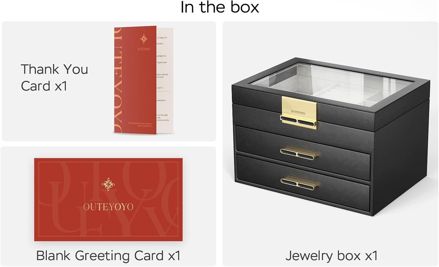 Buy in Bulk Jewelry Organizer with Glass Lid, 3-Layer Jewelry Box, 2 Drawers, for Big and Small Jewelry, Earrings, Rings, Necklaces – Ideal Gift for Women and Girls, Midnight Black (Model A2307BK) Source from Factory