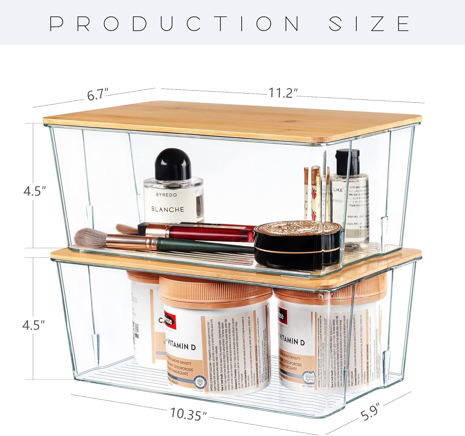 QUALITY CONSTRUCTION - Made of solid bamboo lids and durable shatter-resistant plastic, perfect for home decorations with natural feelings.Protect your items from dust and debris.