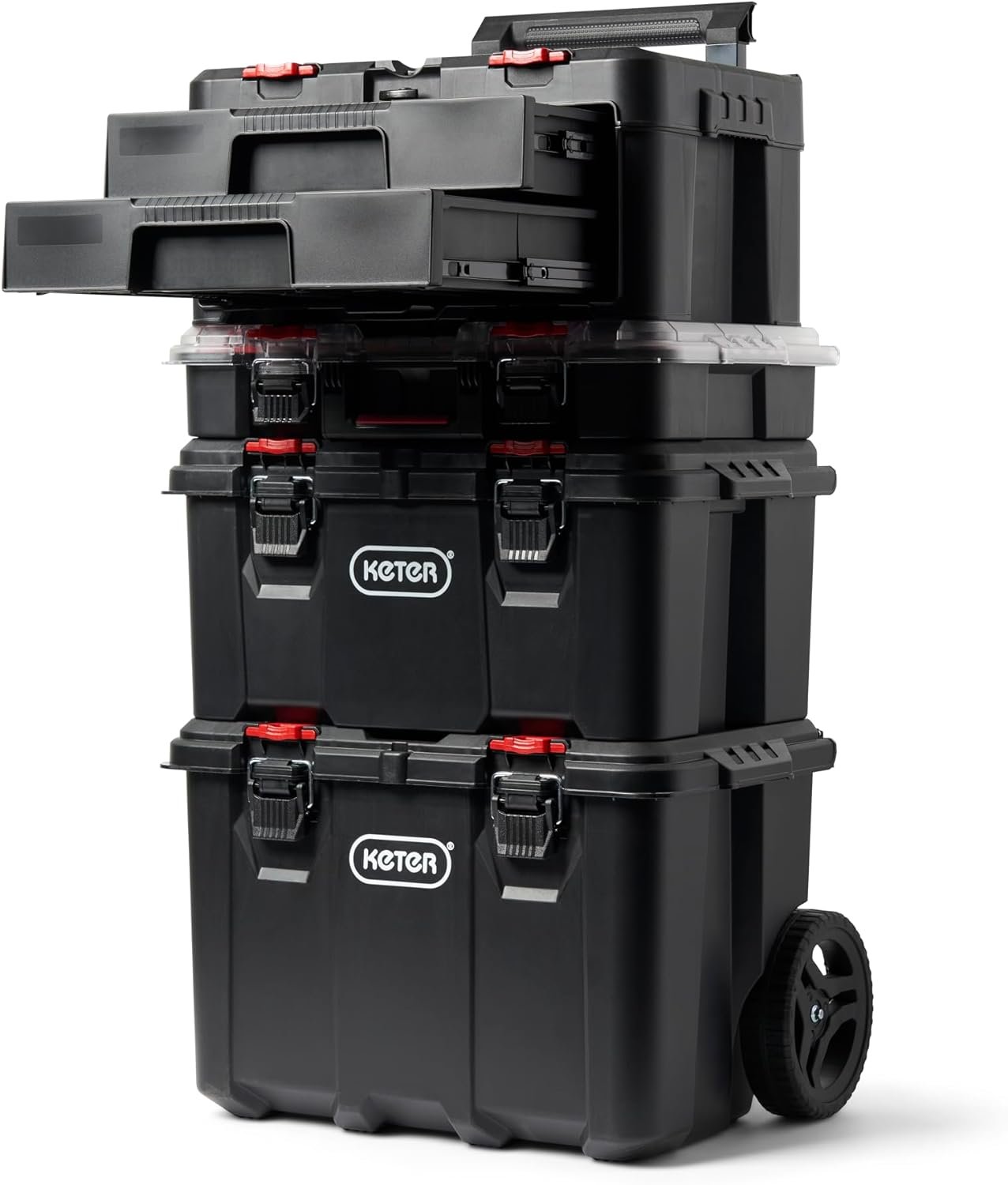 Can be easily stacked on to any of the storage units within the Keter Tool System