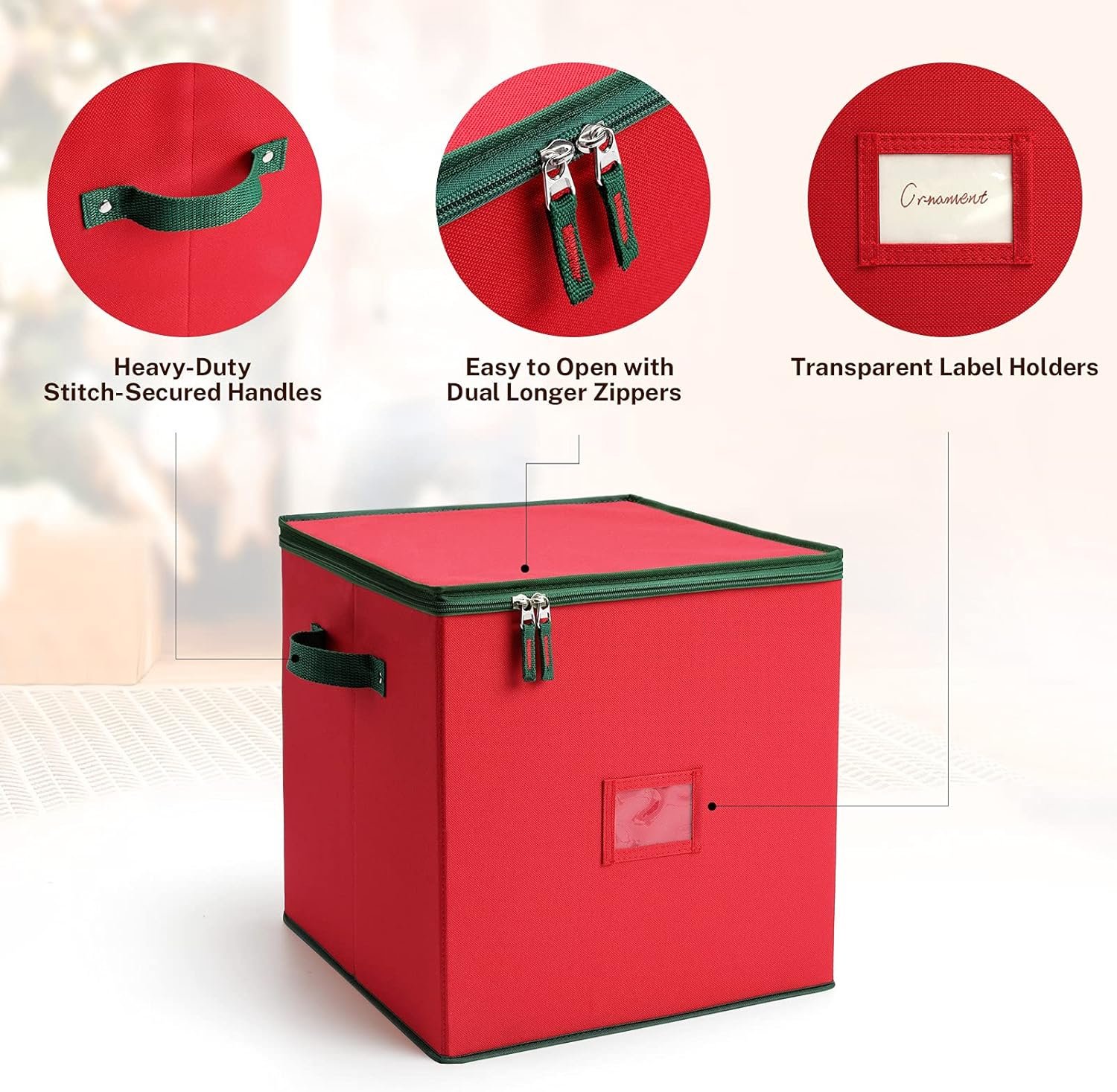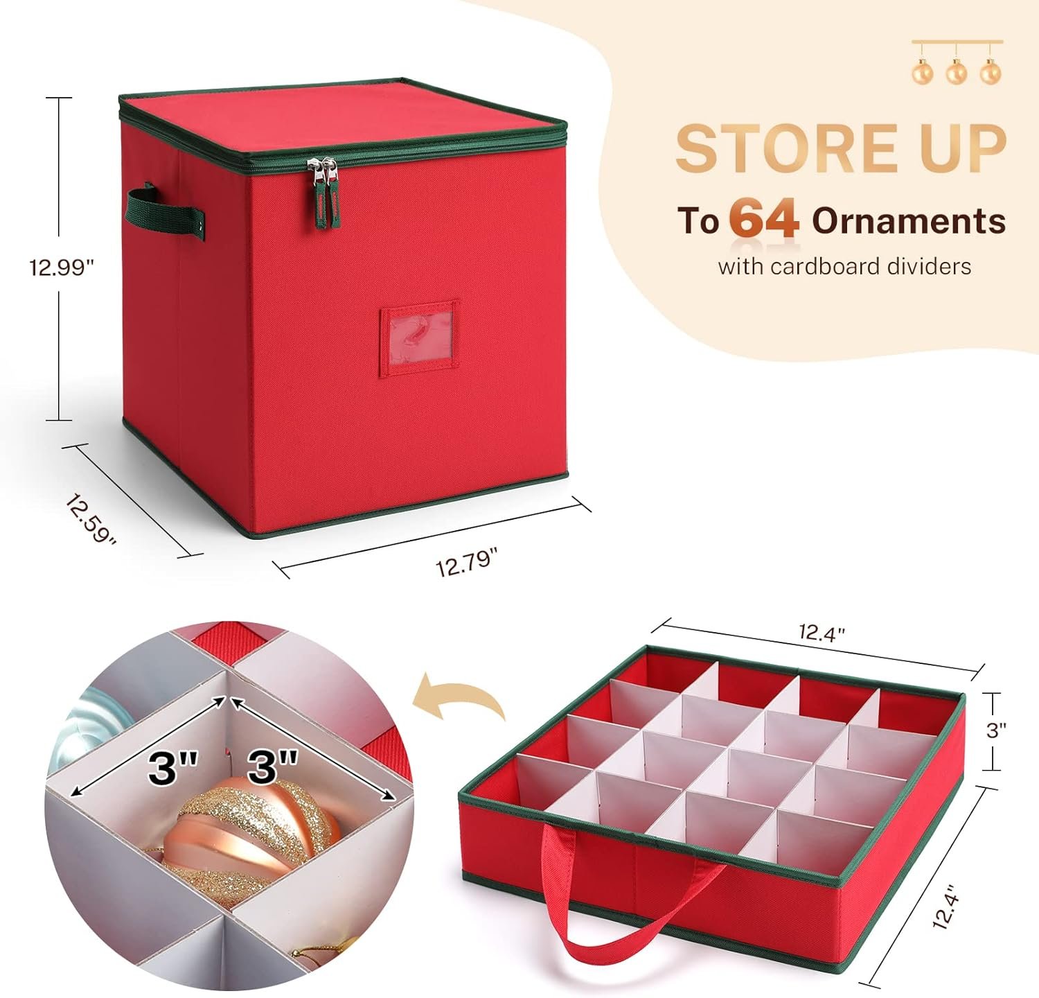 🎄DIMENSIONS🎄: 12.9" x 12.9" x 13", Christmas ornament decor storage can hold up to 64 decorations and accessories.