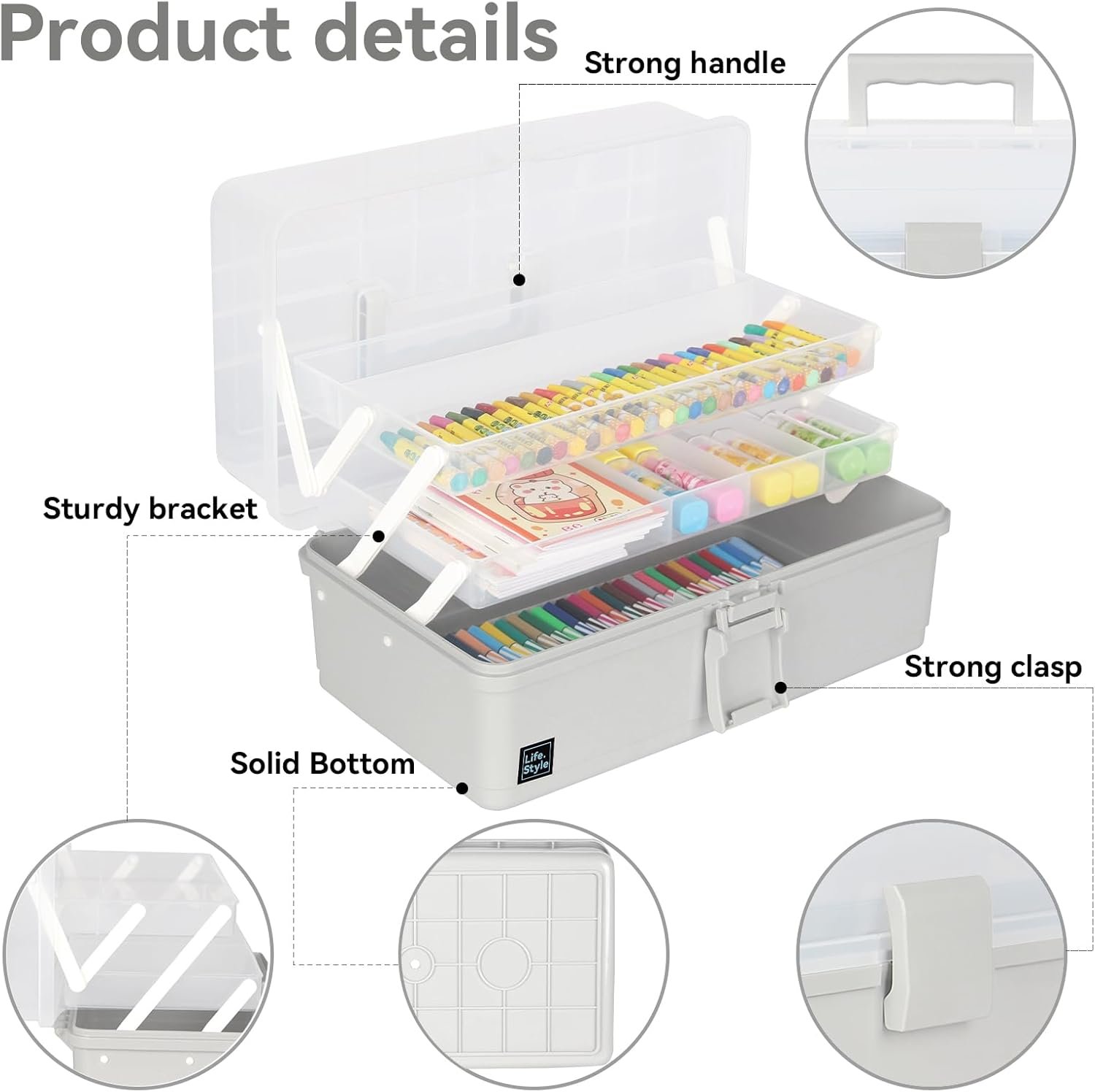 RUGGED AND DURABLE: The craft supply box has a sturdy movable support and a large buckle. After repeated tapping and bearing tests, it will not fall when tilted at 180°. It is sturdy, wear-resistant, resistant to fall, and does not deform.