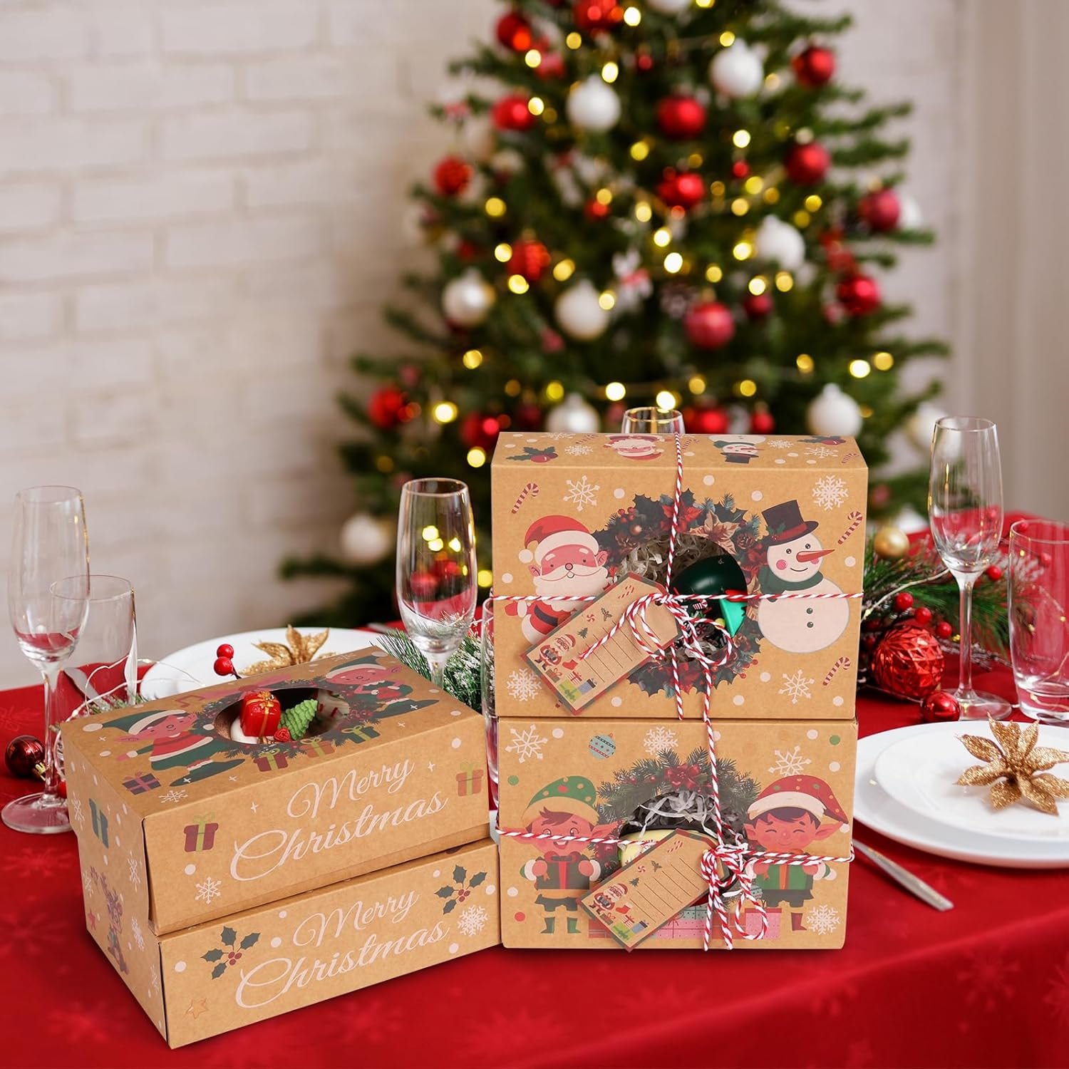 Various Design: These Christmas cookie boxes contains 4 designs. Our designers carefully designed 4 different patterns(Santa Claus, dwarf, snowman, wreath), different patterns meet different preferences. There is a creative clear window on the top of the box to better display your gifts. No matter who sees them, they will love them.