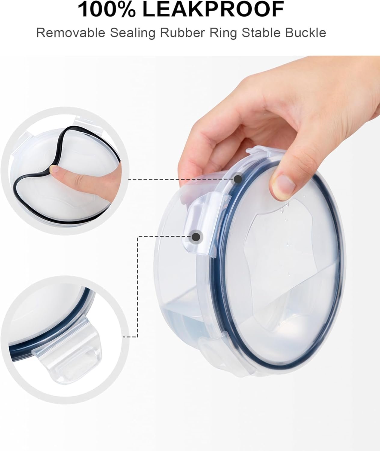 Product Details: BPA-Free Plastic Containers Leakproof, Airtight Lids (Snap Lock) Stackable, Space-Saving Design Clear, See-Through Transparency FDA-Approved Quality Freezer and Dishwasher Safe Microwave Safe (Not Lids)