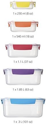 Joseph Joseph Nest Lock Plastic BPA Free Food Storage Container Set with Lockable Airtight Leakproof Lids, 10-Piece, Multi-Color