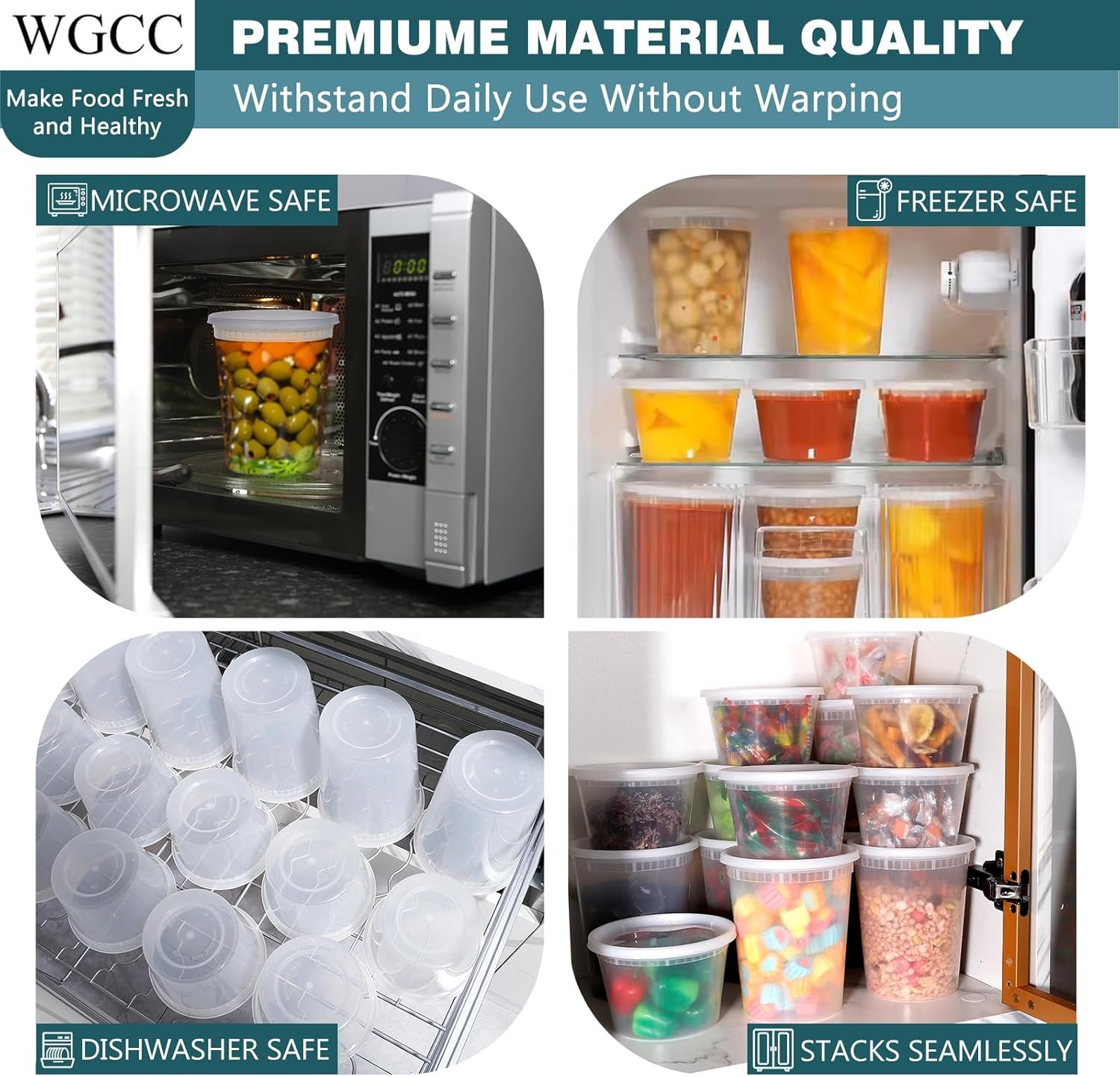 WGCC Deli Containers With Lids, Plastic Food Storage Containers, Soup Containers with Lids, Leakproof, Stackable BPA-Free, Microwave/Dishwasher Safe