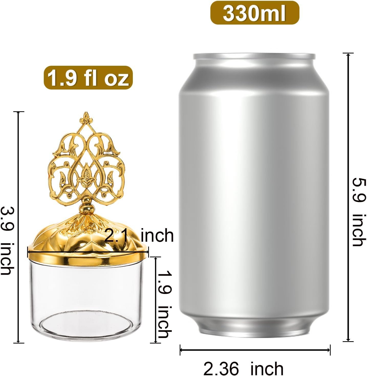 Package& Size: Our product includes 24 pack candy boxes. The boxes will be disassembled into two parts: 24 dome lids and 24 candy jars. Each candy box measures 2.1''x 4'' (include lid height ), 1.9 fl-oz in capacity.