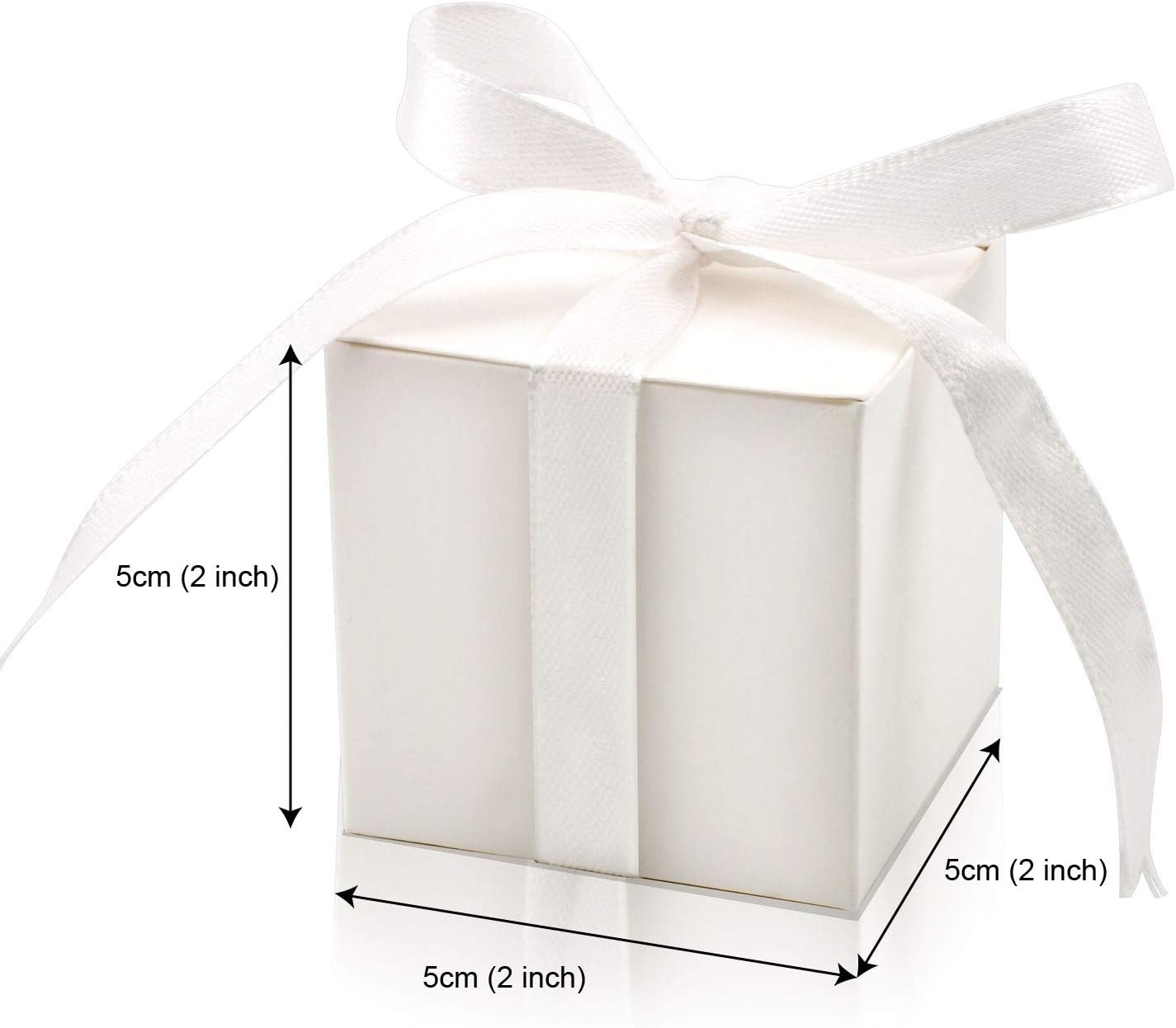 Package includes:100 pcs white candy boxes and 100 pcs white ribbons.