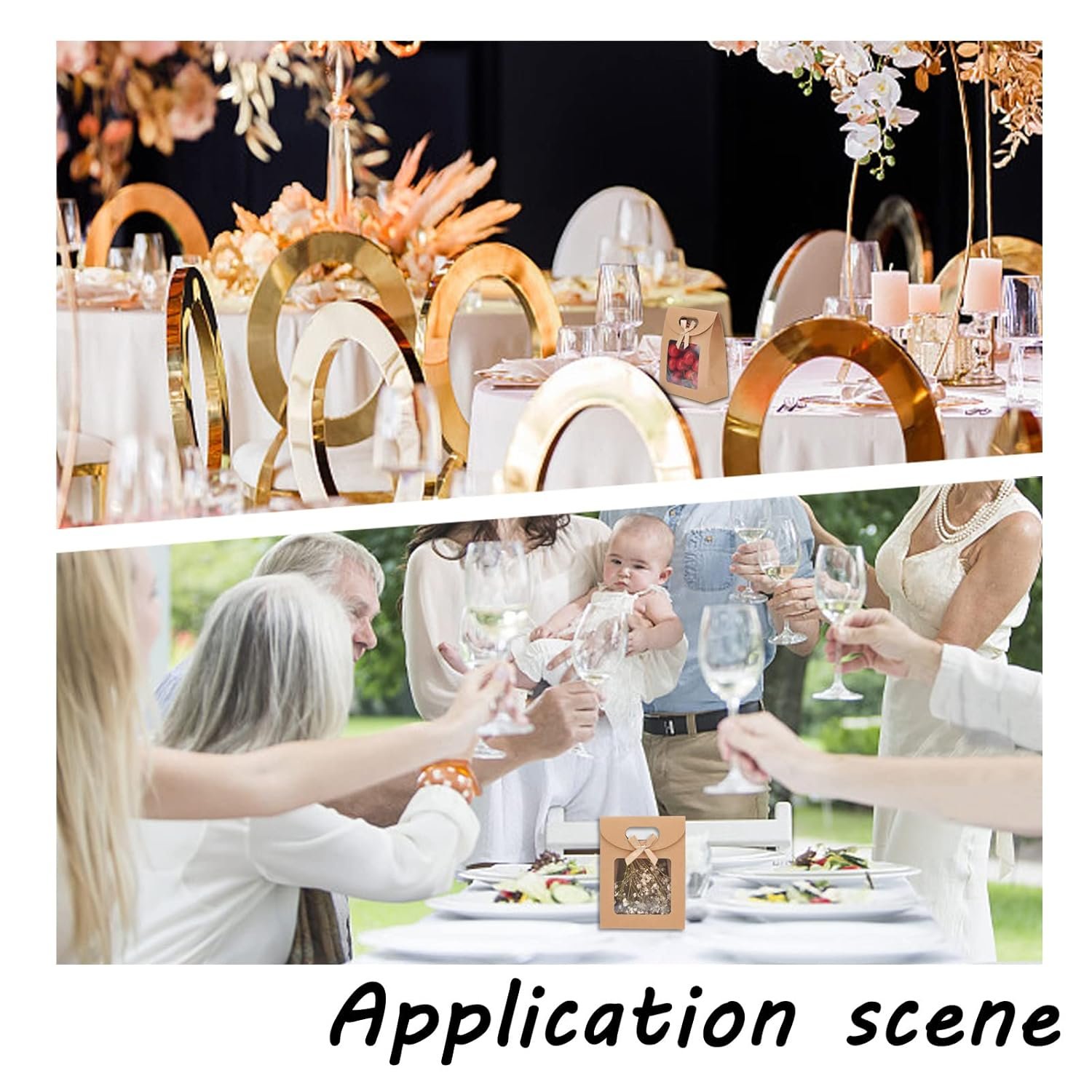 Thoughtful Design -- Our paper bags are not only designed with sturdy handles for easy portability, but also have transparent windows to clearly display the contents of the paper bags. And the paper bag is self-supporting design, which can ensure that everything inside can stay upright.