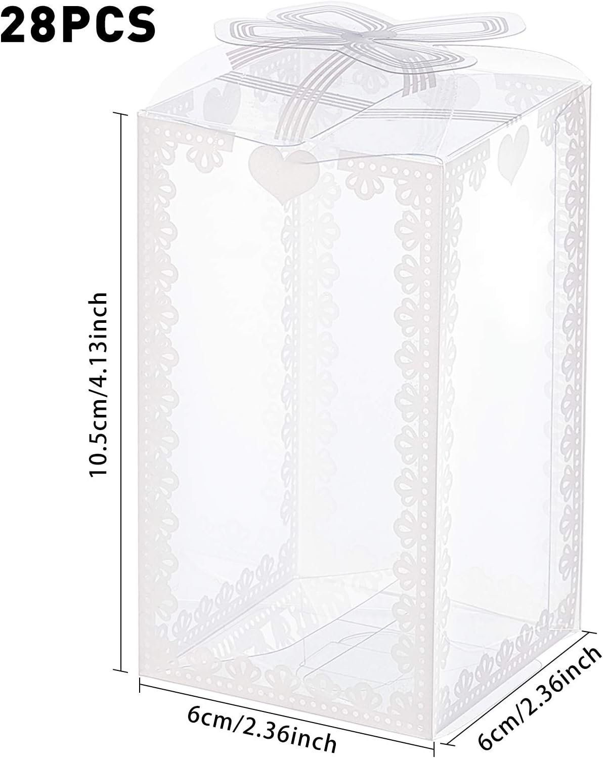 【Package Includes】: 28pcs clear plastic gift boxes, measures 6x6x10.5cm/2.3x2.3x4", rectangle after assembled; For details, please refer to pics