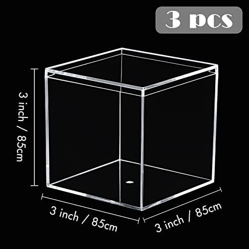 Clear Acrylic Decorative Boxes with Lid: 3.3x3.3x3.3Inch/85x85x85mm, small size, does not take up much space, easy to carry. Clear and transparent design, you can see the products in the box without opening the lid.