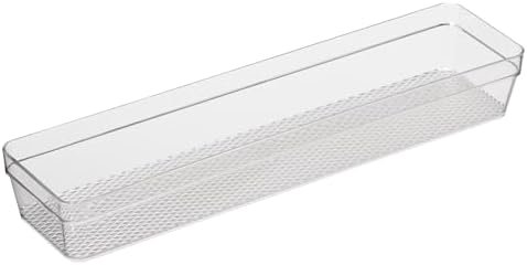 CLEAR: Clear acrylic drawer organizer tray is simple enough to keep out on countertop or vanity