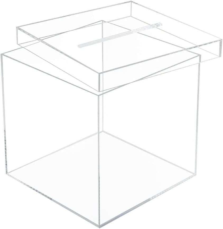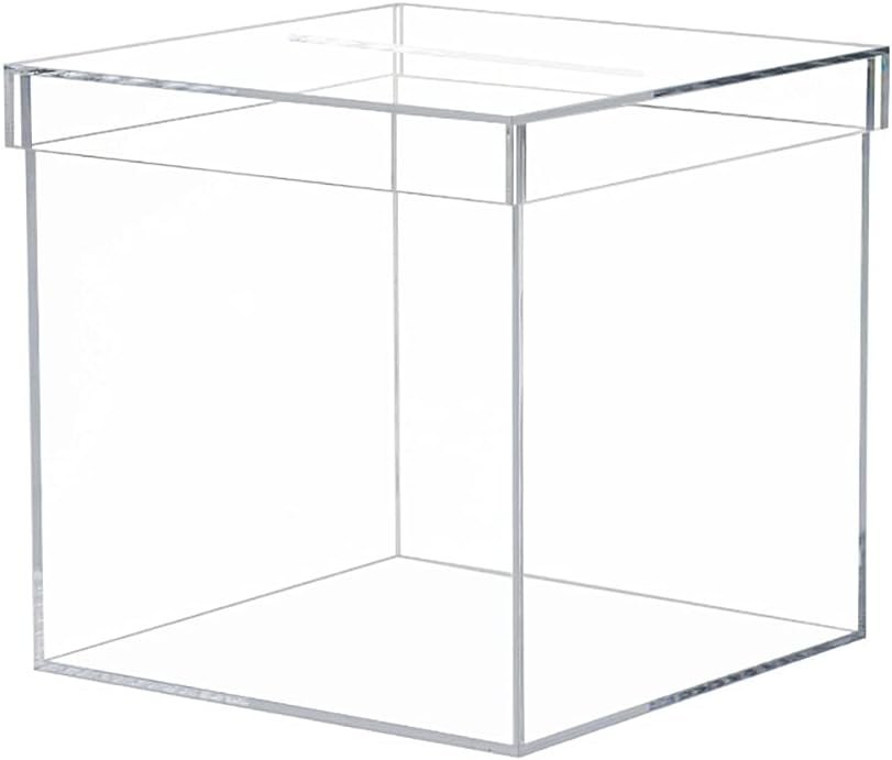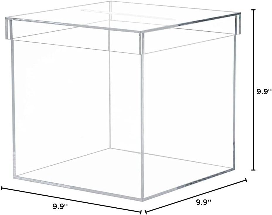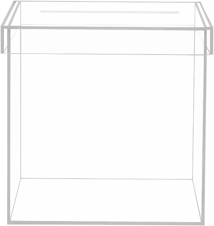 From OnDisplay comes a beautifully designed acrylic wedding/money gift box with lid. Constructed of heavy duty handmade clear acrylic, the OnDisplay Wedding Box features a removable acrylic lid that is pre-cut with a laser cut opening to insert gift cards for your special day. The clear acrylic design allows you to easily see your card in the box. Holds over 150 cards. 9.9" x 9.9" x 9.9".