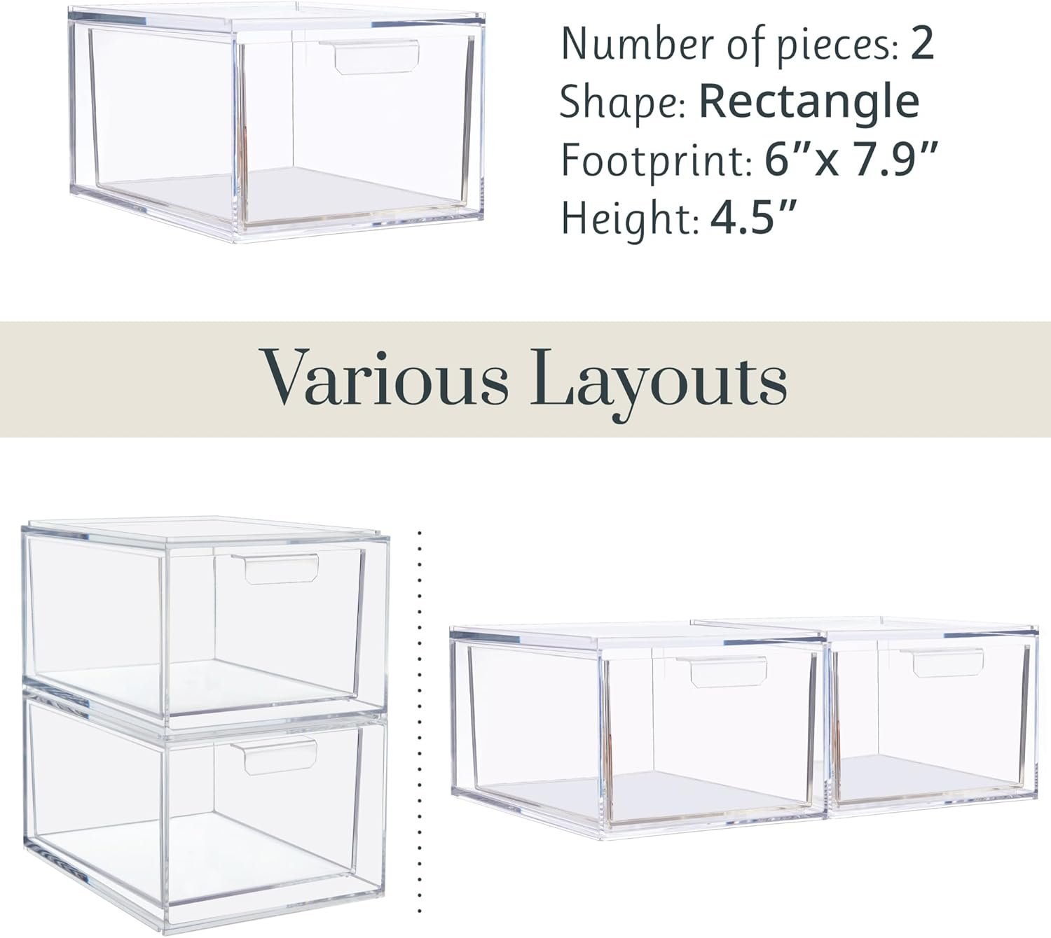Buy in Bulk STORi Audrey Stackable Clear Bin Plastic Organizer Drawers | 2 Piece Set | Organize Cosmetics and Beauty Supplies on a Vanity | Made in USA Source from Factory