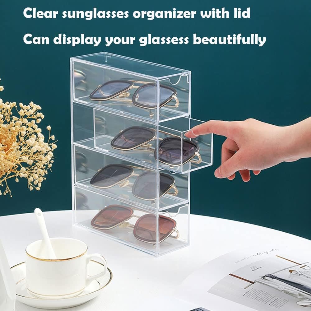 Lidded Storage Bins with 4 slot sunglasses premium grade clear acrylic display case, perfect for using in a wide range of home and commercial decors.