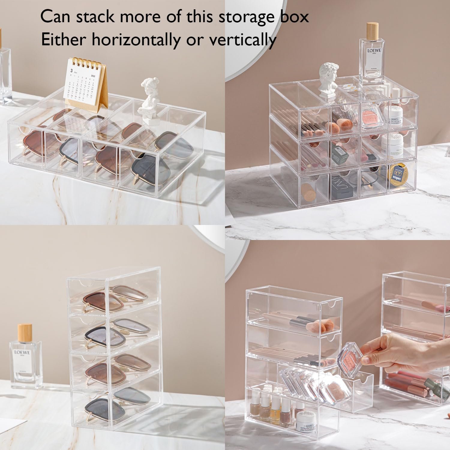 Small and compact, saves desktop space, and the drawer design is easy to open. You can store and display your sunglasses, glasses, jewelry, makeup, stationery, accessories and more.